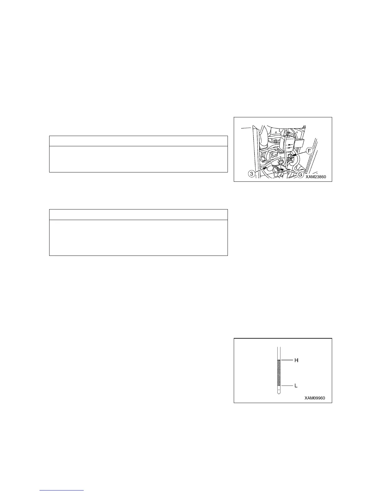 14. With the oil level gauge (G) inserted in the gauge guide, pull the
