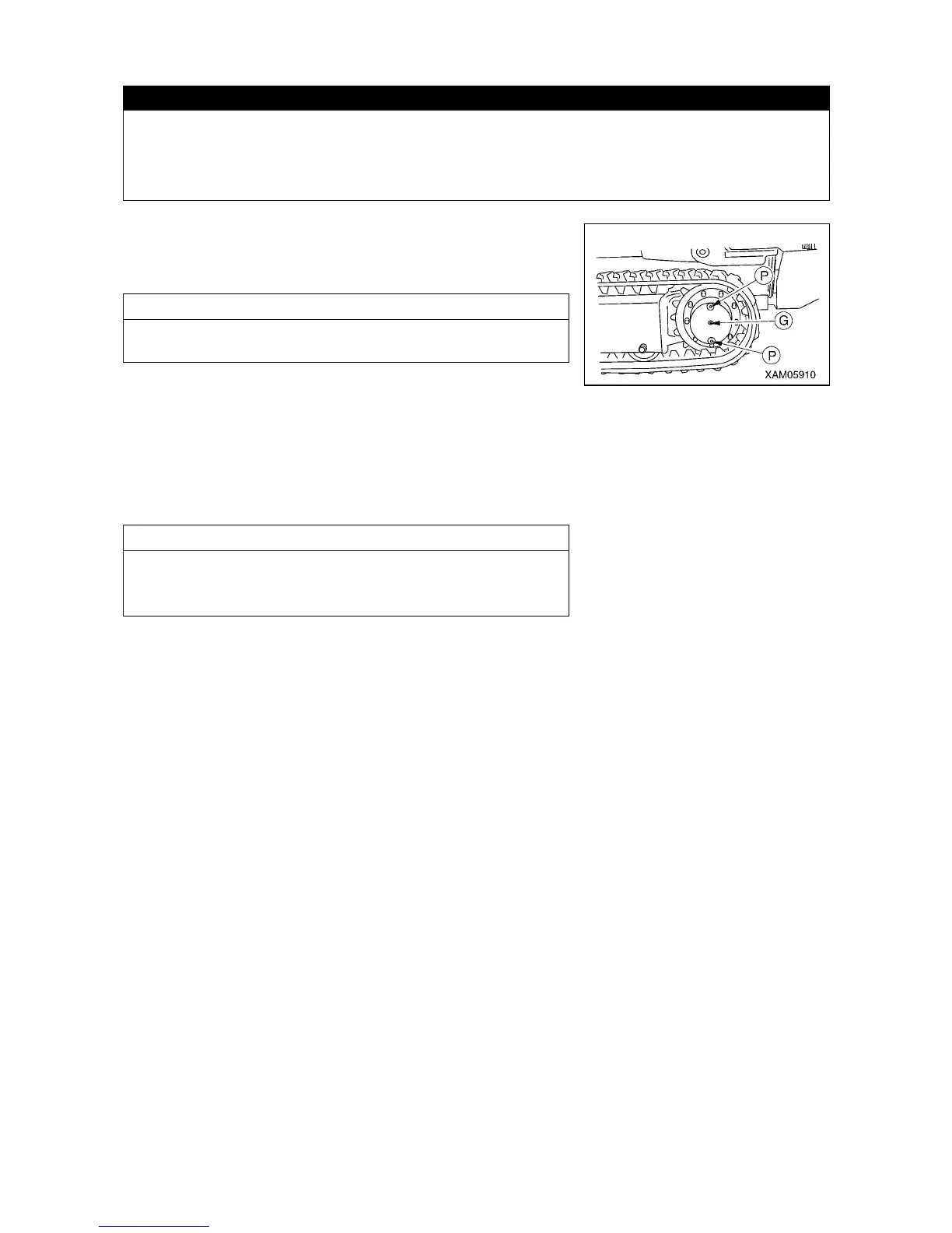 4. Put in the top drain plug (P) and oil inspection plug (G), and