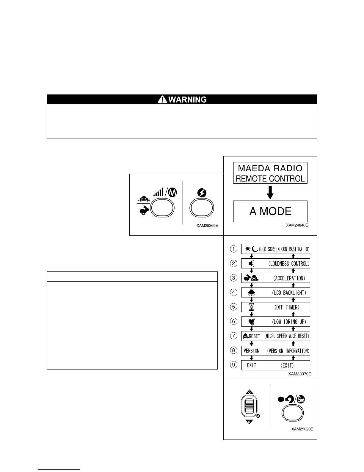 • Before entering into A MODE, always turn the main switch of the Receiver to the OFF position.