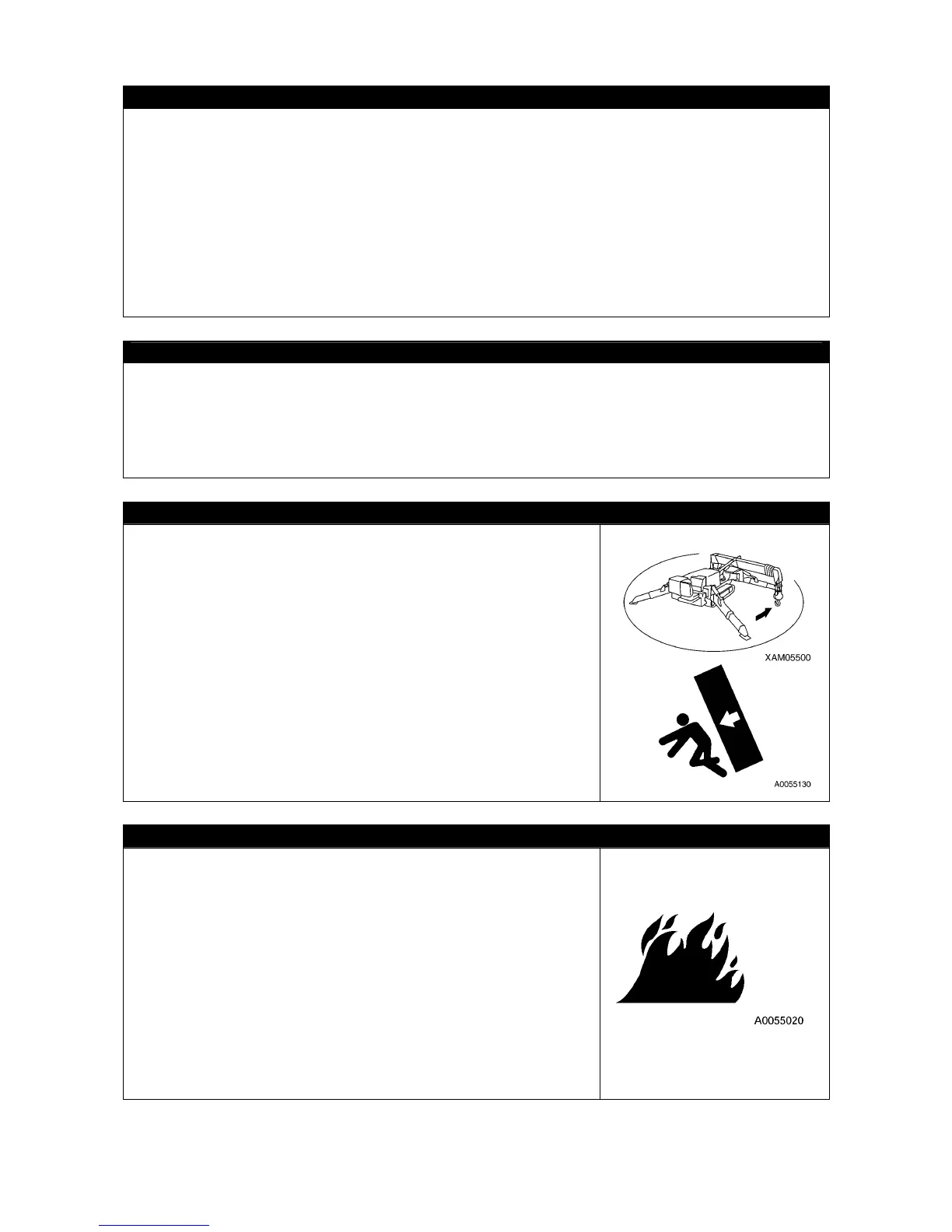 • Do not drive the Machine when fuel or hydraulic oil is leaking from