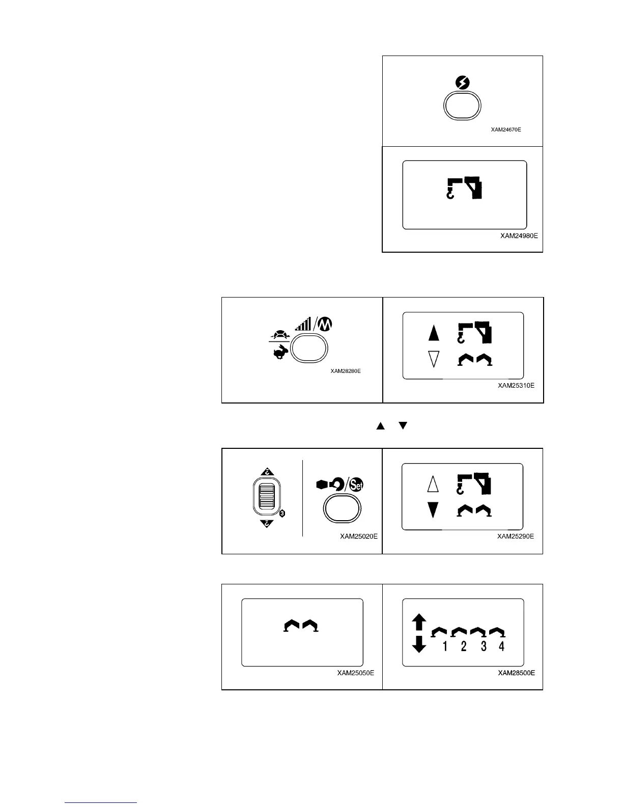 Here, confirm that the “Outrigger mark” is exhibited, then it enters into the “Ground setting mode”, soon