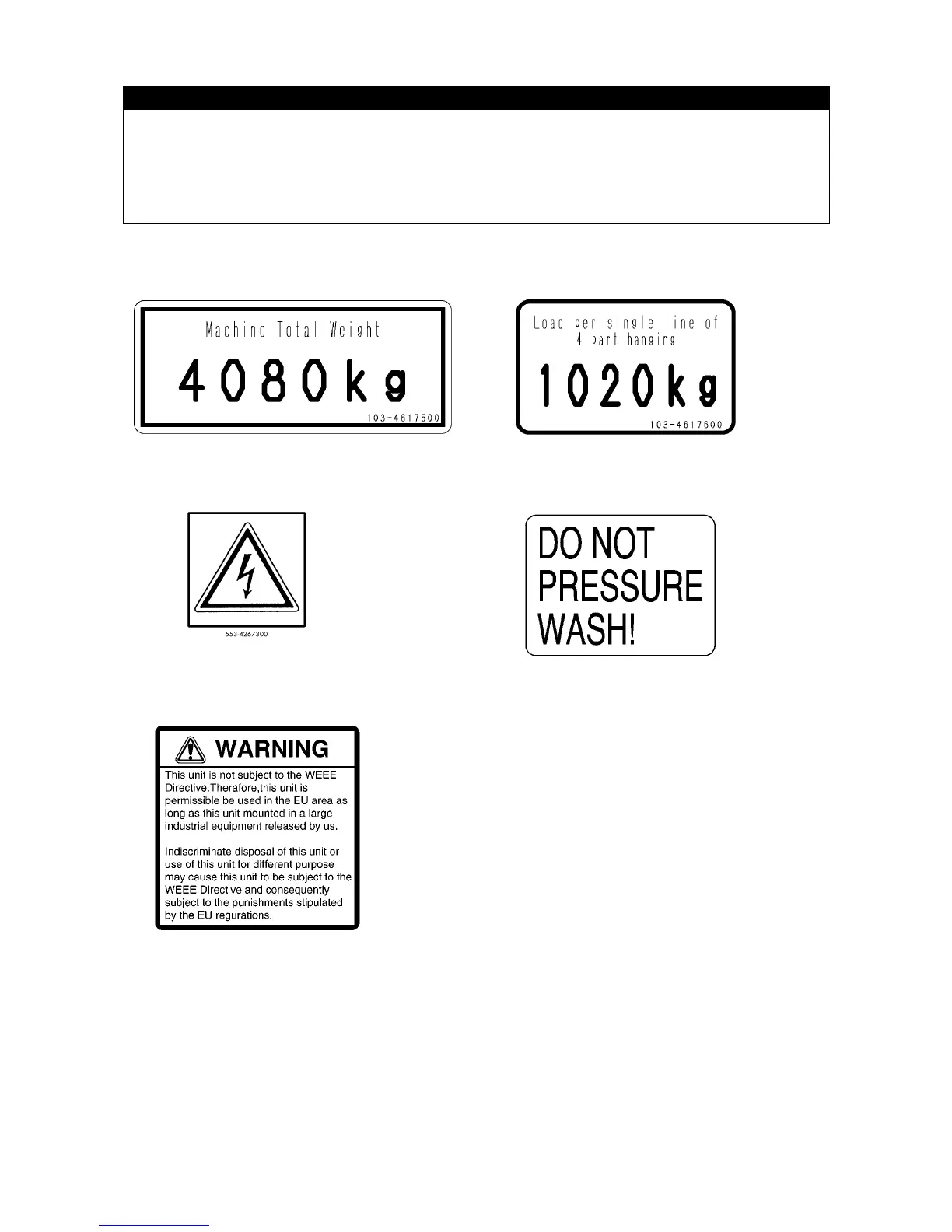 (3) Electric shock caution (553-4267300) (2 pieces) (4) Washing caution (350-4539700)