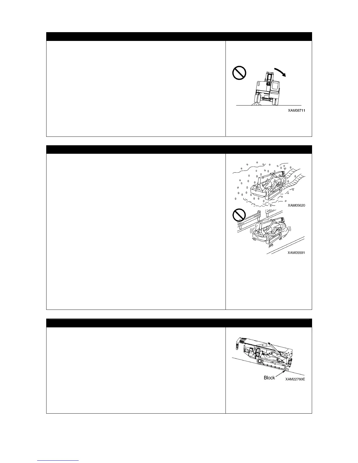 • Do not enter soft ground area. The Machine is difficult to evacuate