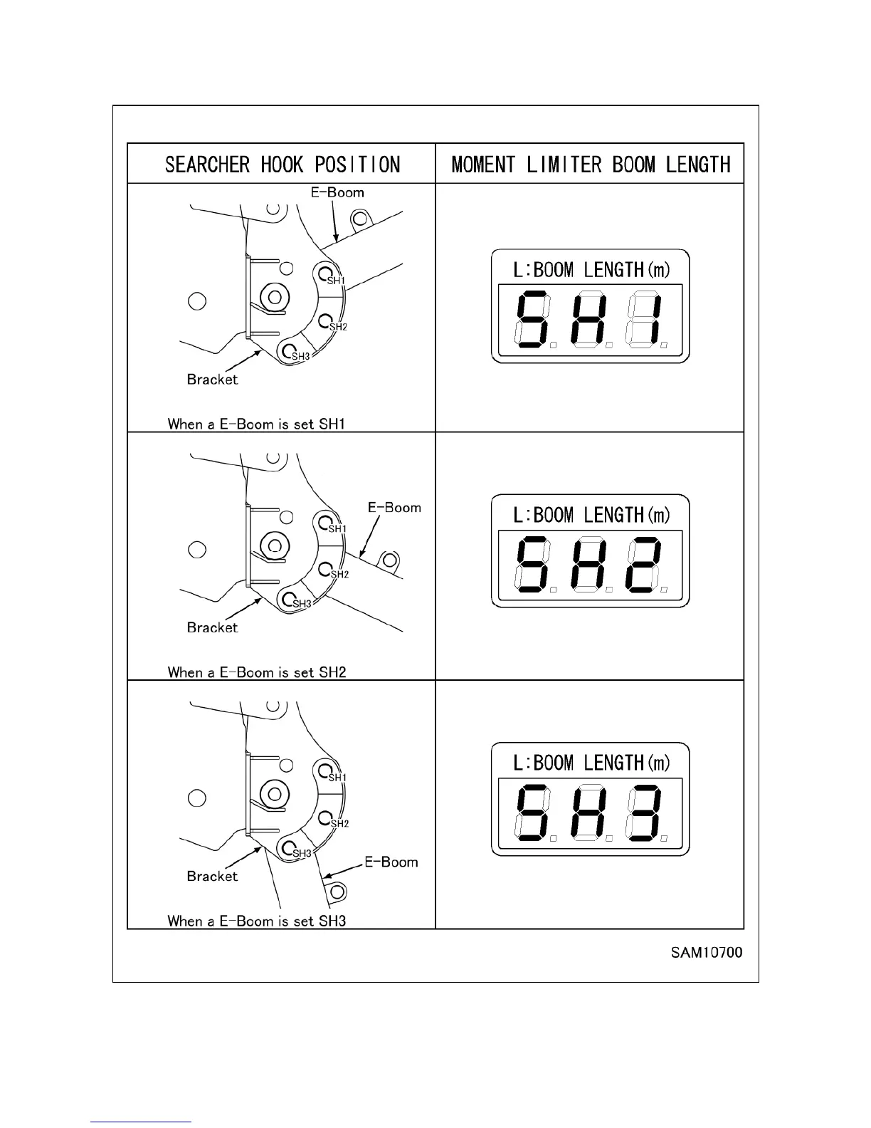 Searcher Hook offset position and mode display in boom length window