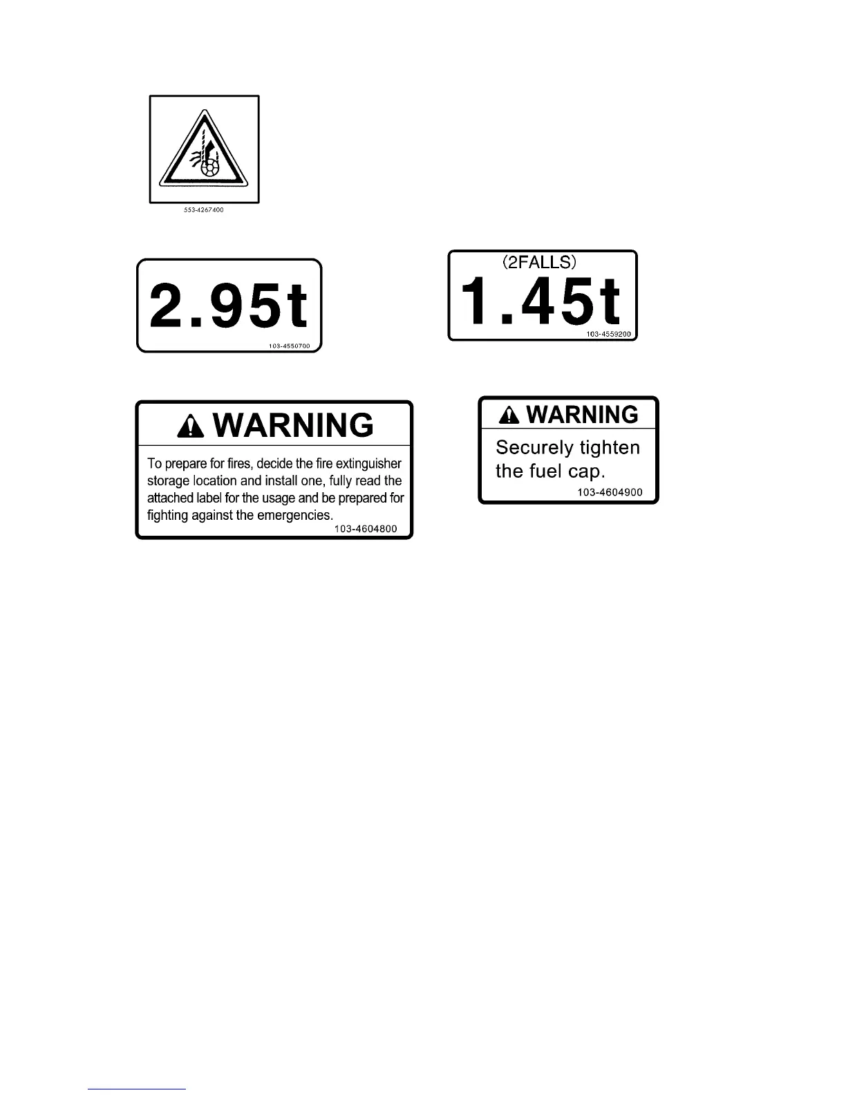 (42) Fire extinguisher caution (103-4604800) (43) Fuel tank cap caution (103-4604900)