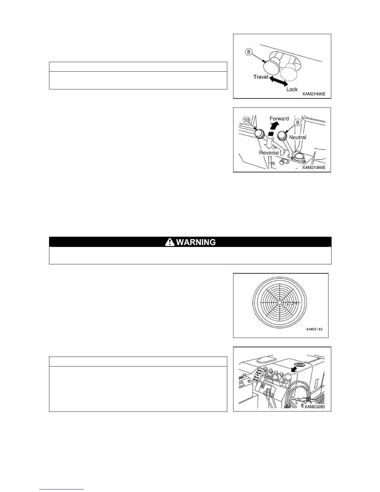 • Left turn: Release your hand from the left lever and operate the right lever forward or backward.