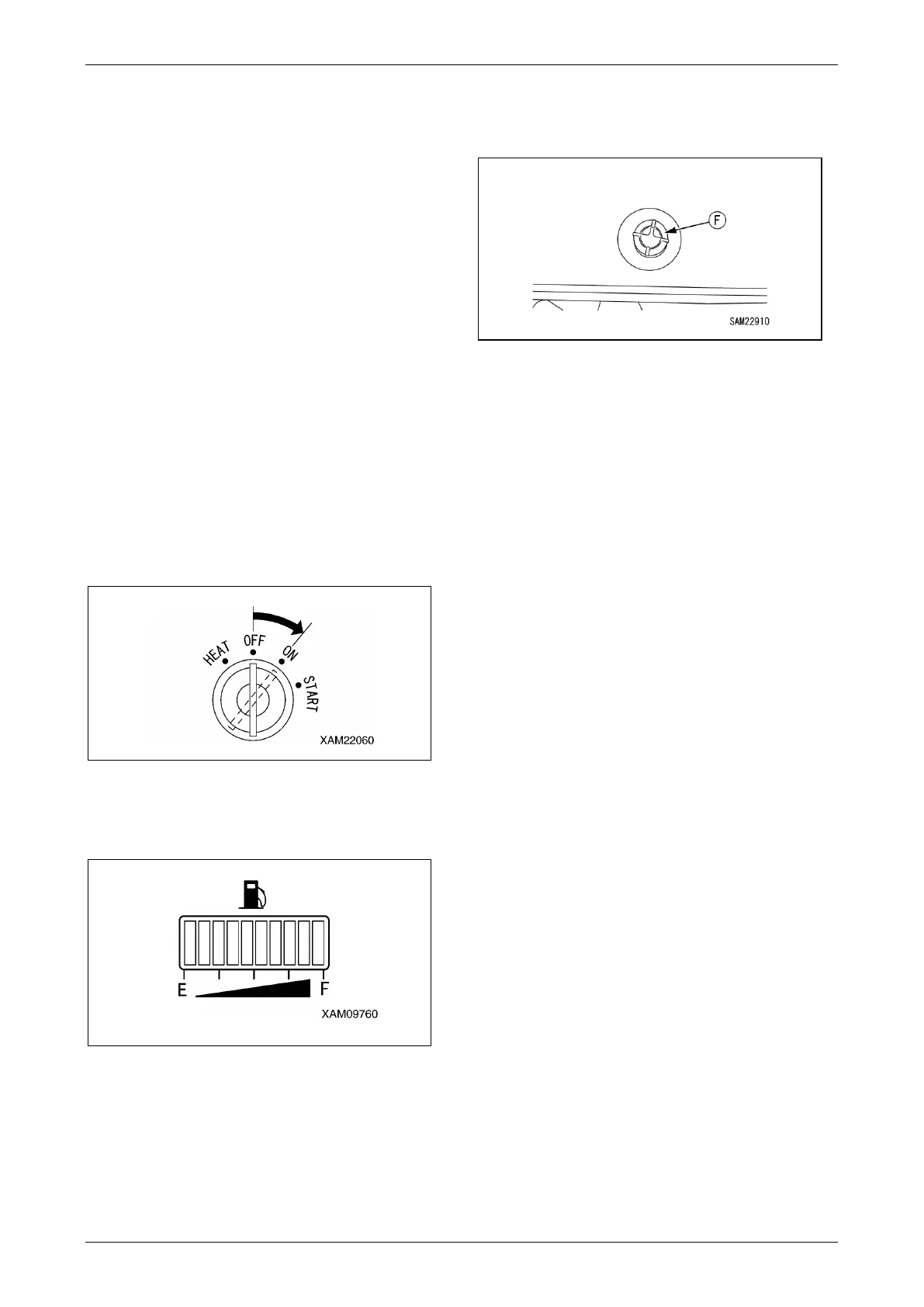 3. If the fuel level is low, remove the tank cap (F)