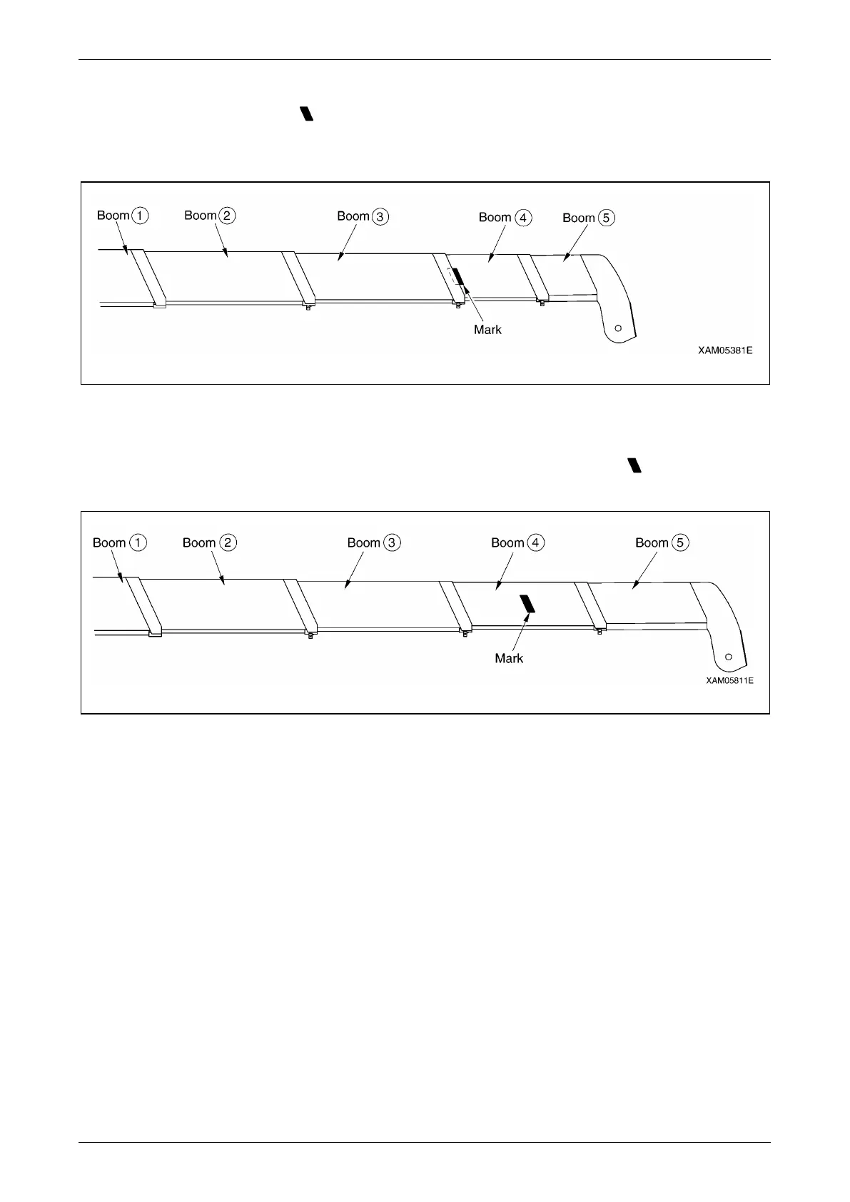 4. "Boom (1) + (2) + (3) + (4)": With booms (2) and (3) fully extended, booms (4) and (5) are extended