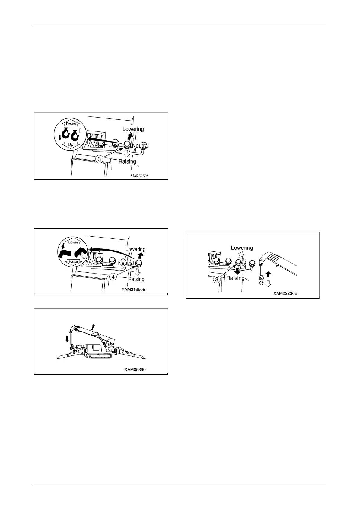 2. Operate the boom derricking lever (4) to the
