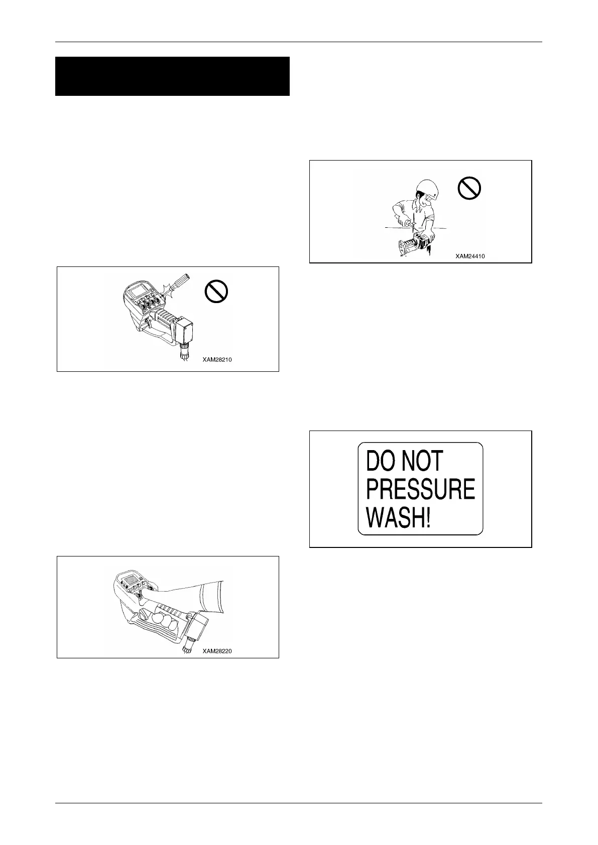 • Do not attempt water-wash the Transmitter, in
