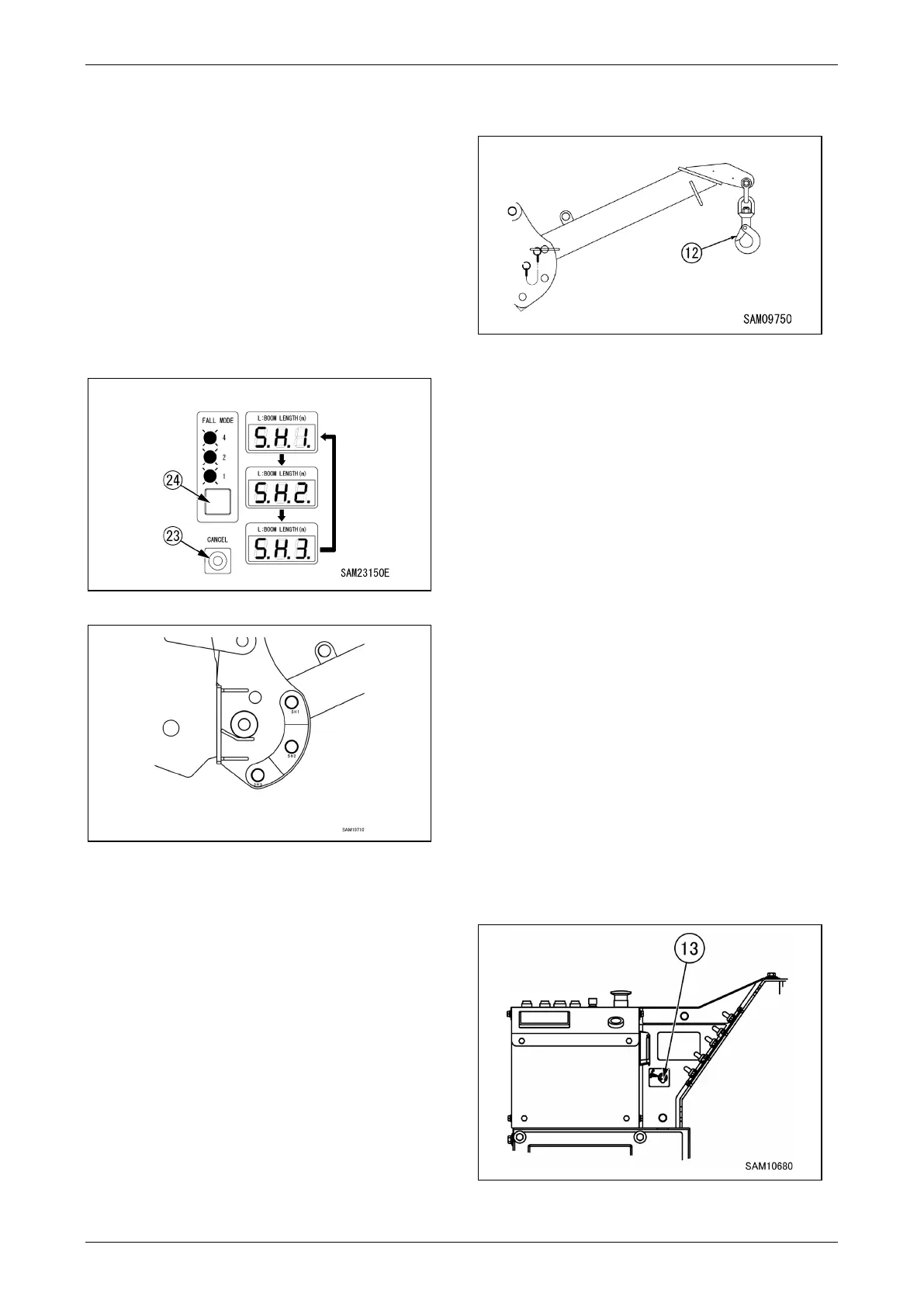 searcher hook mode, raise boom to hoist the