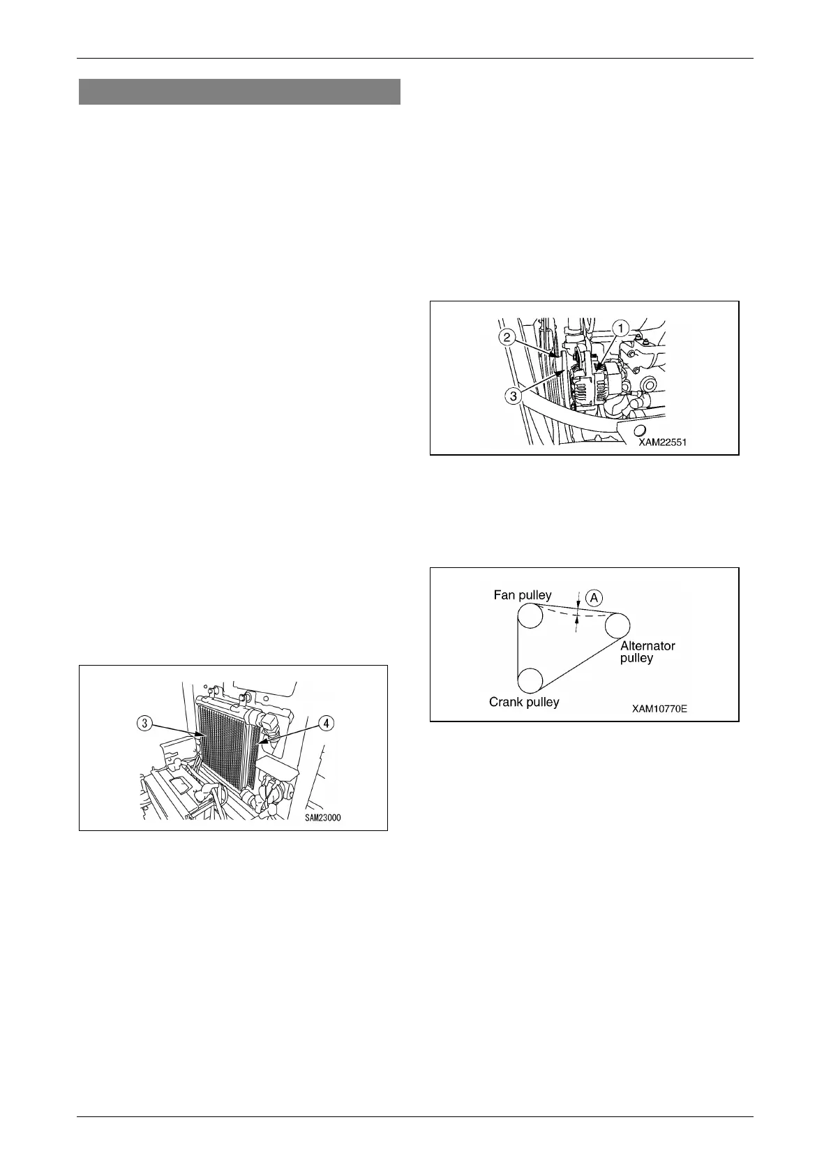 • Check the pulleys for breakage, the V groove