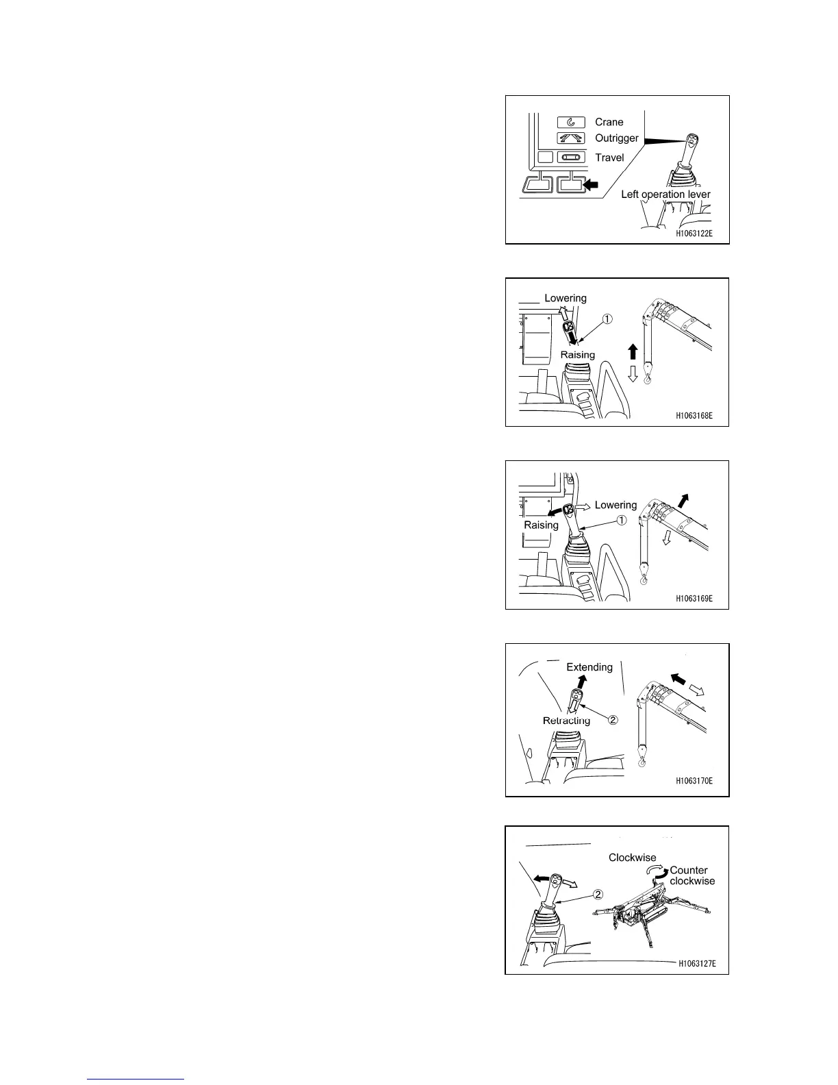 (1) (Travel/Outrigger/Crane) on the monitor or the left