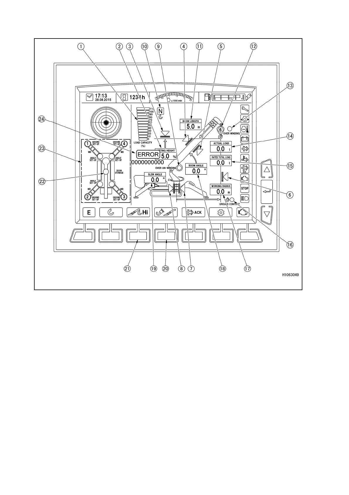 MOMENT LIMITER - NAMES FOR MONITOR INDICATORS (CRANE MODE)