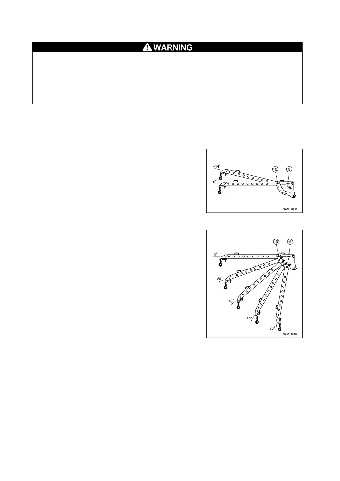 ・When changing the angle, the searcher hook boom might fall suddenly after pin is pulled out, so