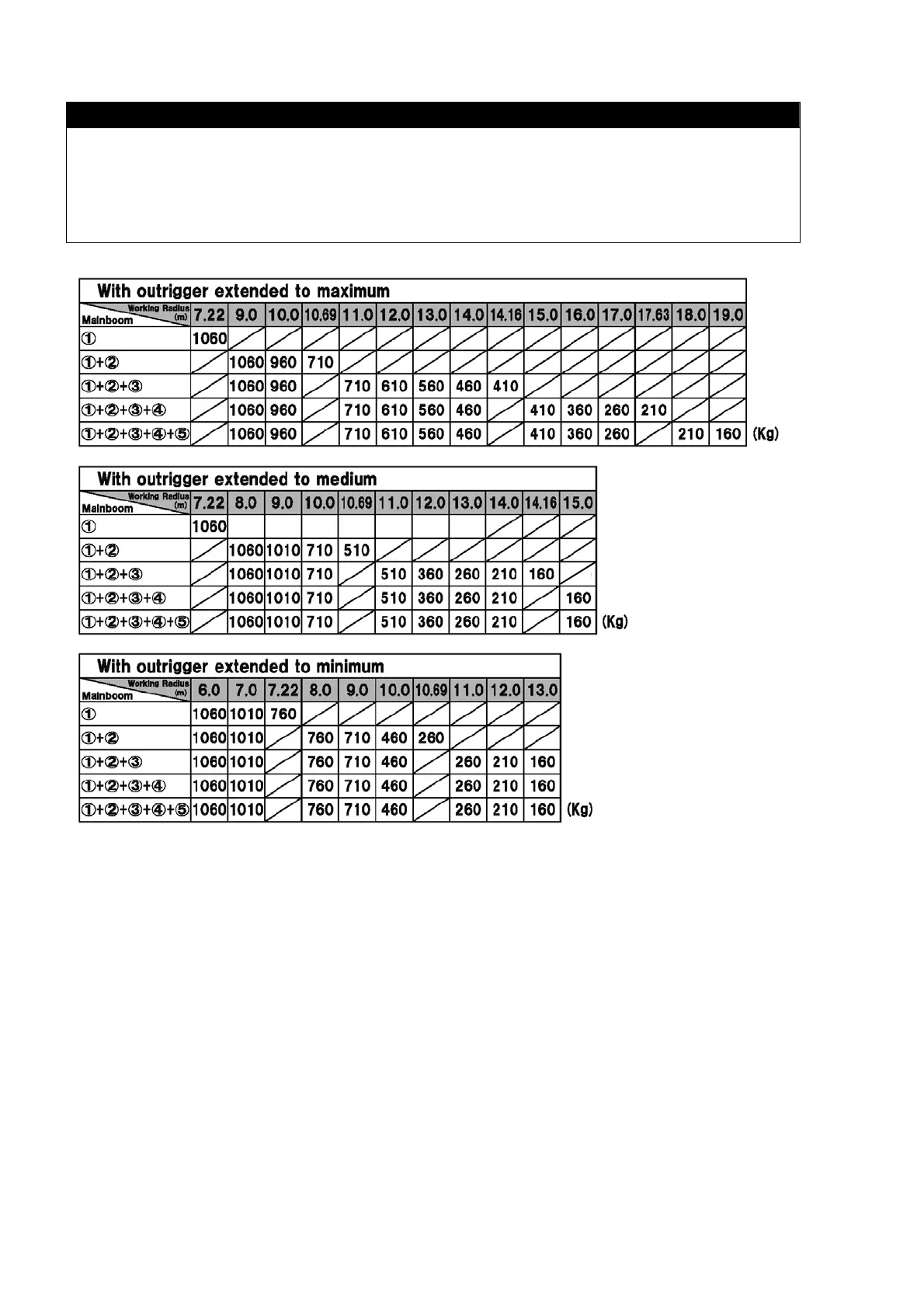 ・When the searcher hook is used, the rated total load varies depending on the outrigger