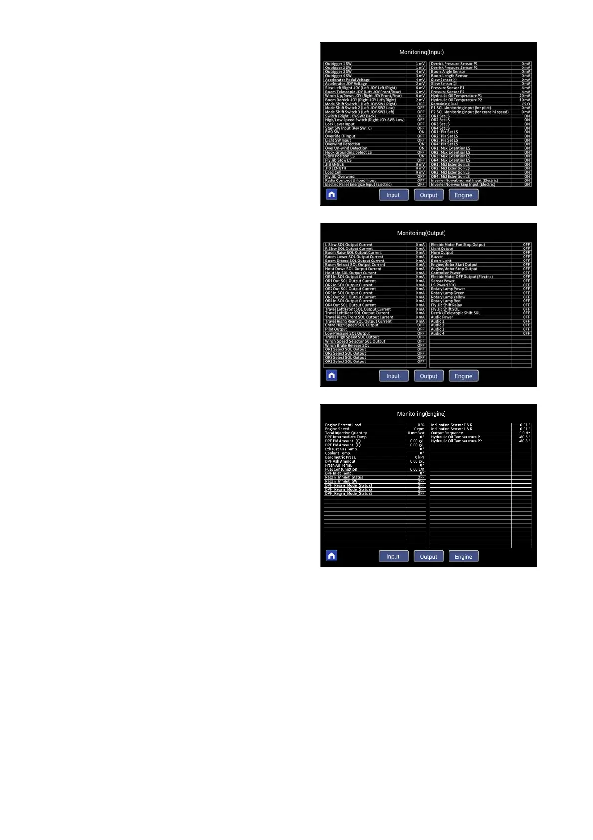 Press the "Input", "Output", "Engine" buttons displayed at the