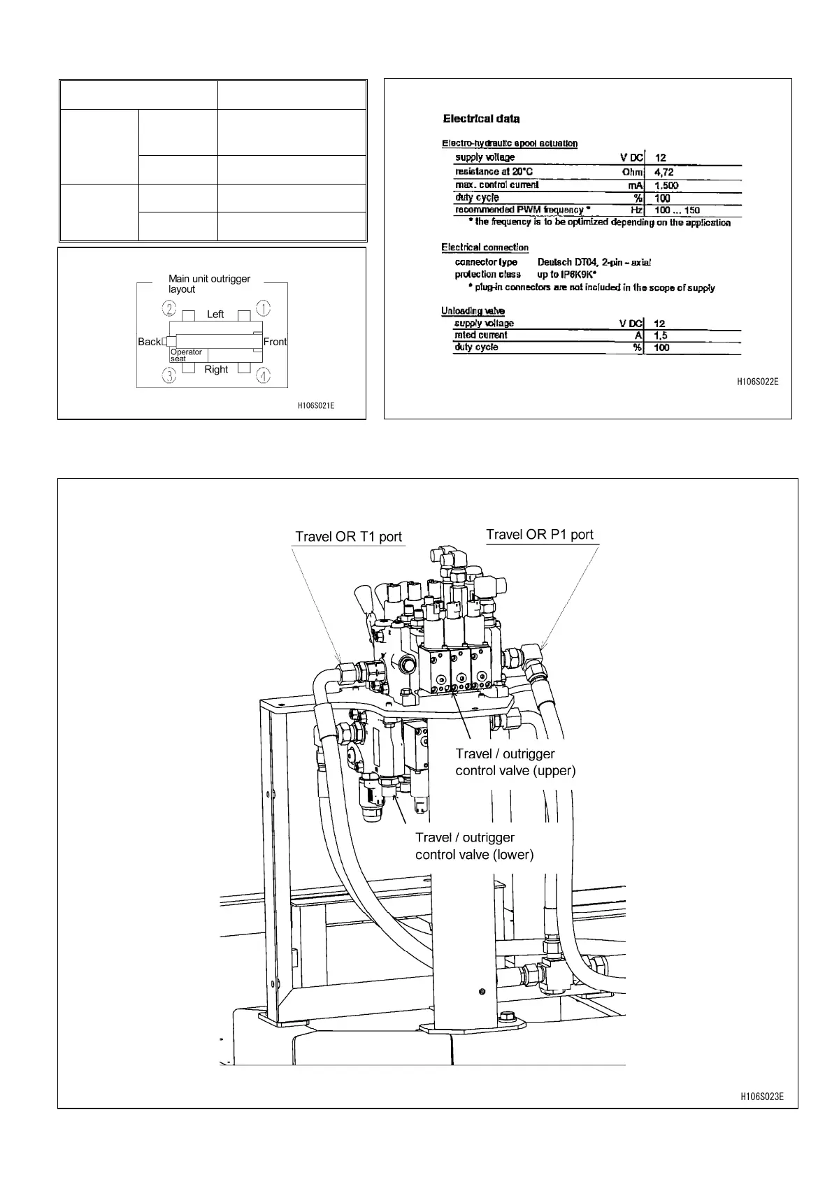 Maeda MC815C - Hydraulic Specifications; Solenoid Valve Specifications; Travel; Outrigger Control Valve Layout