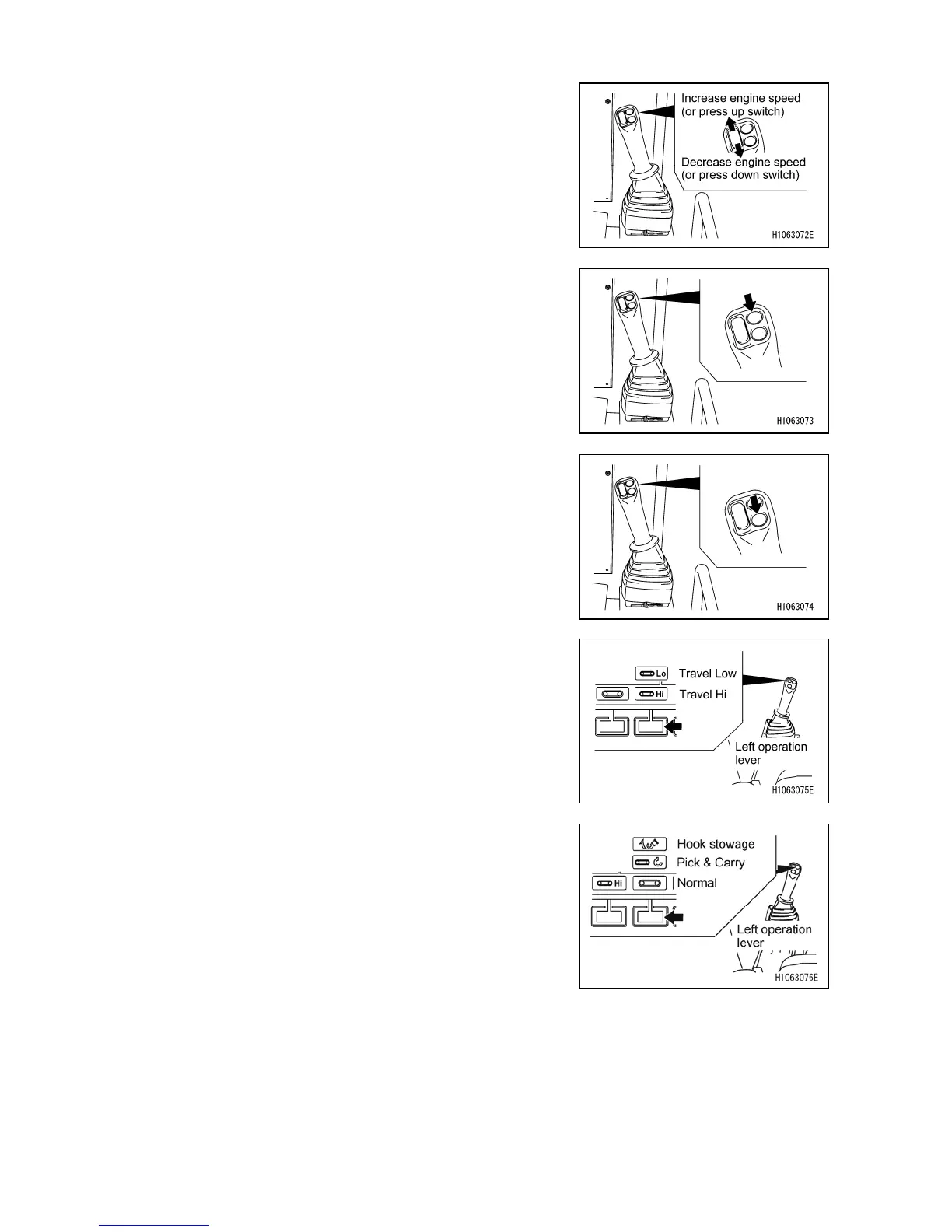 “Pick & Carry”, and “Hook Stowage” with the up/down