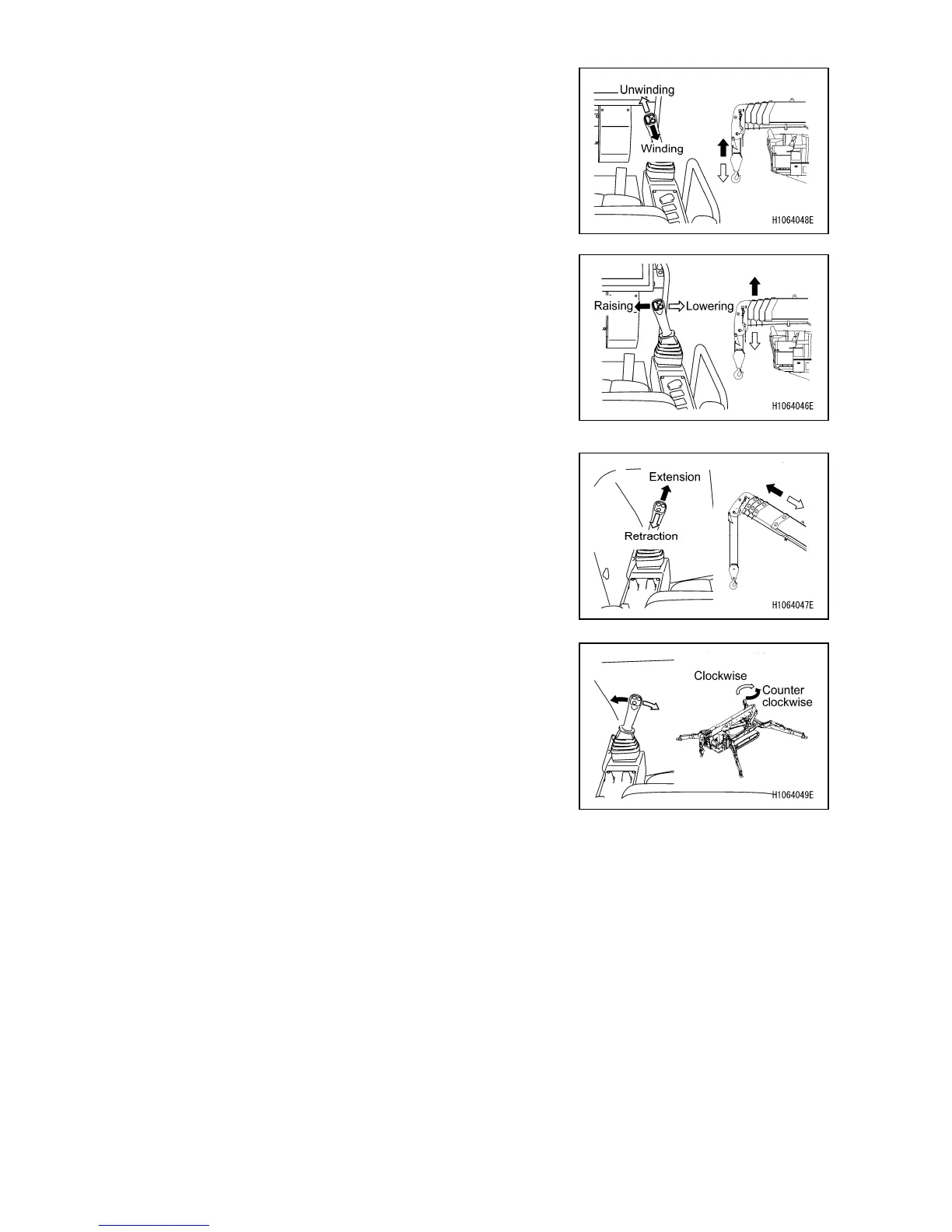 Slews the boom in the clockwise direction while the lever is