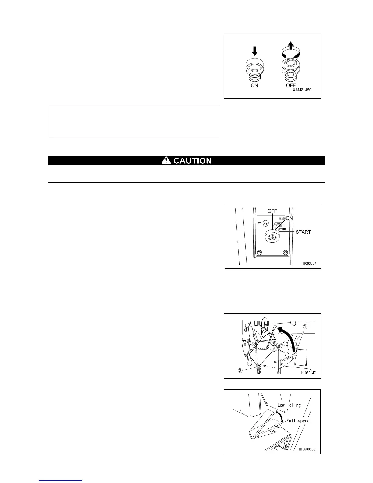 Be sure to return the starter switch key to the “OFF” position when you finish the work.