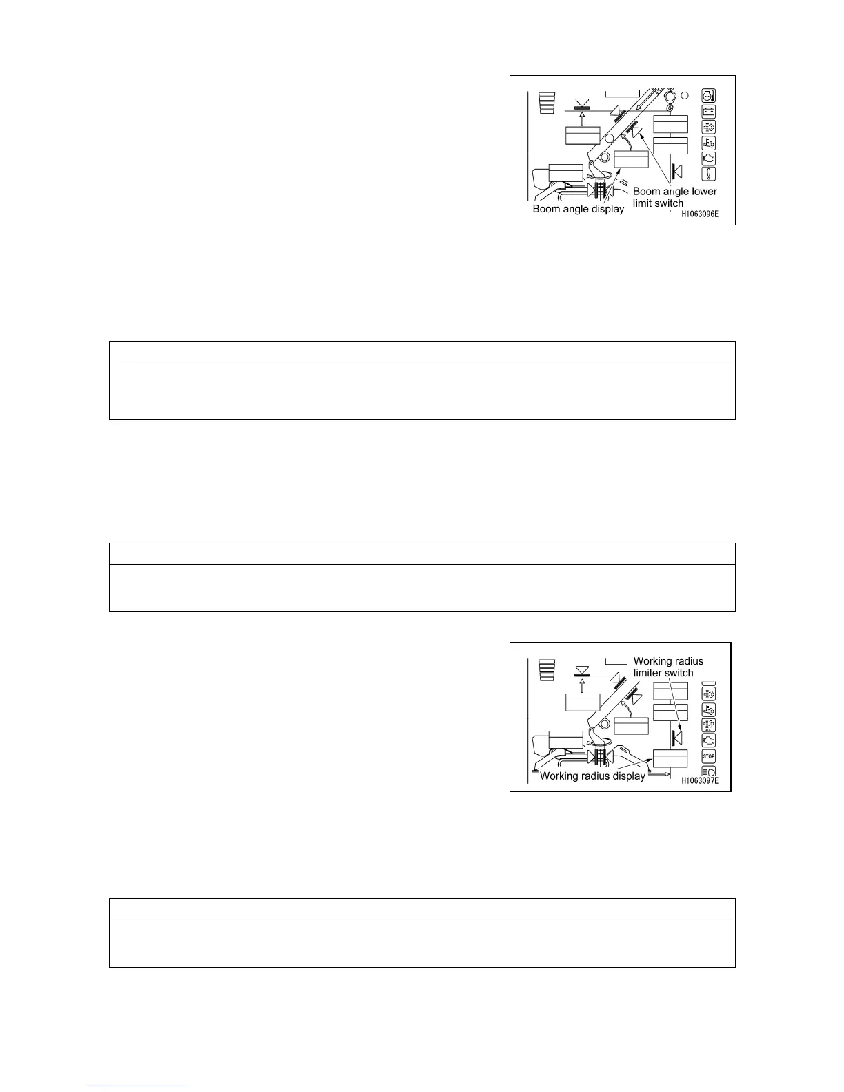 specified working radius. If the boom does not stop, set the working radius again by repeating