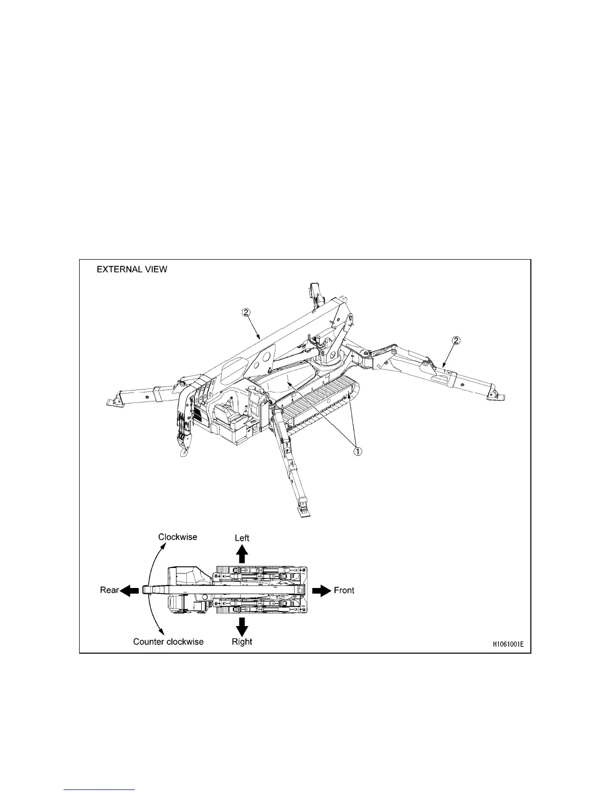 (2) Crane The boom slewing directions (clockwise [right] and counterclockwise [left]) are