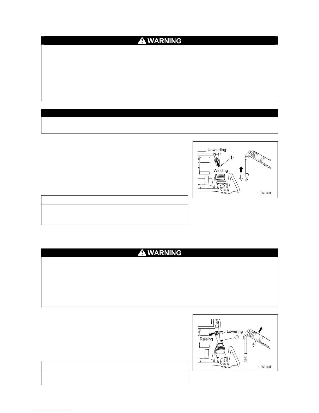• When it is necessary to unwind a significant length of the wire rope to lower the hook