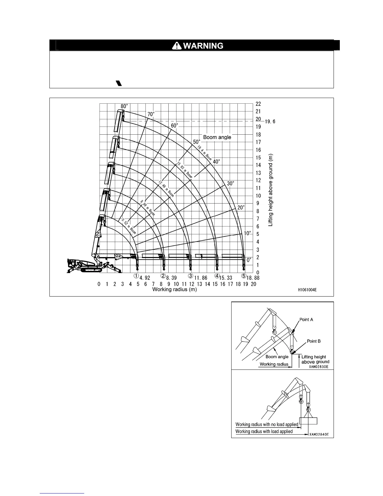 • Status (4) shown in the “diagram of working radius and lifting height” is observed