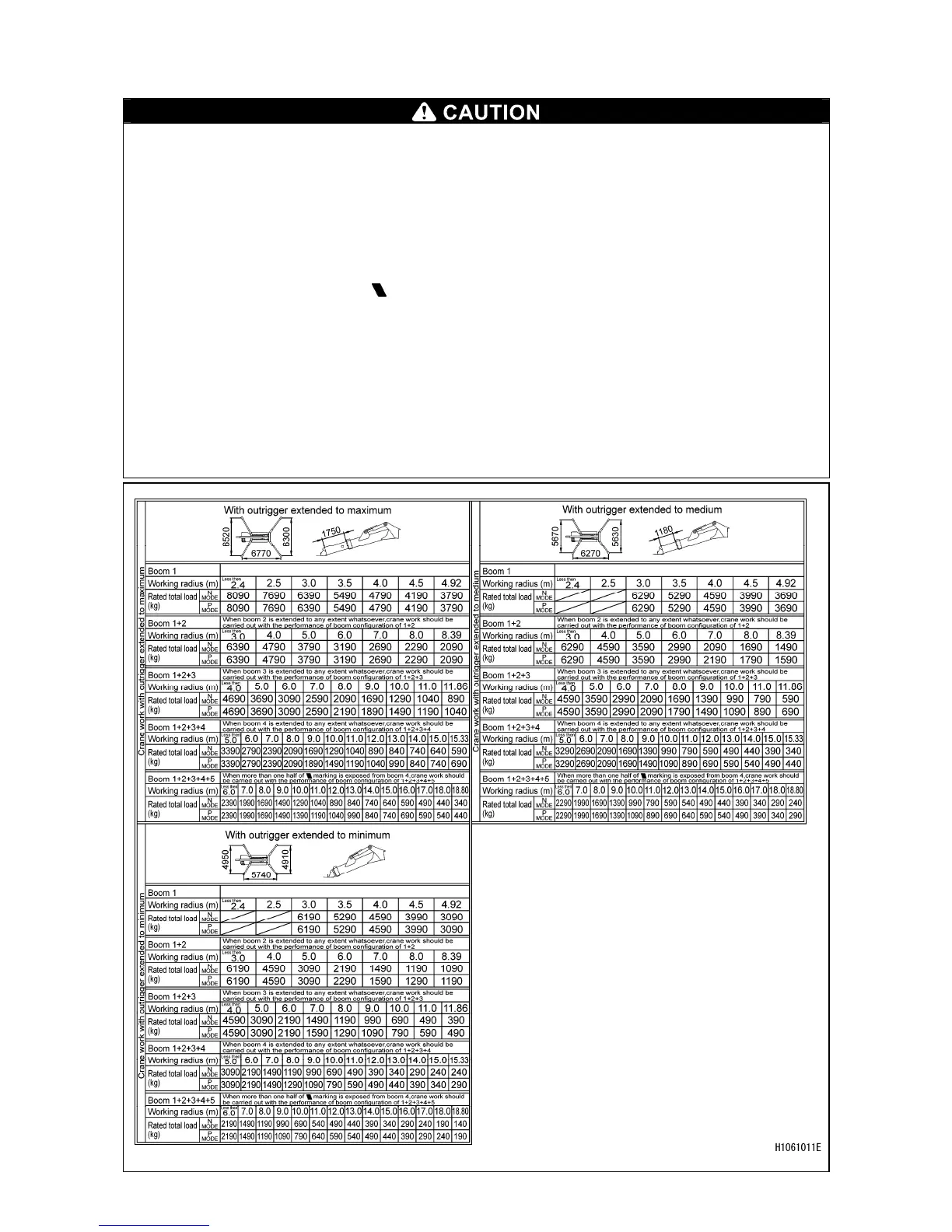 accordance with the values in “Rated total load chart for outrigger extended to other