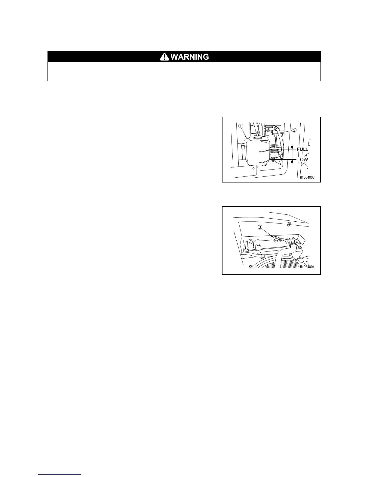 (2) Remove the radiator cap (3) and check the coolant