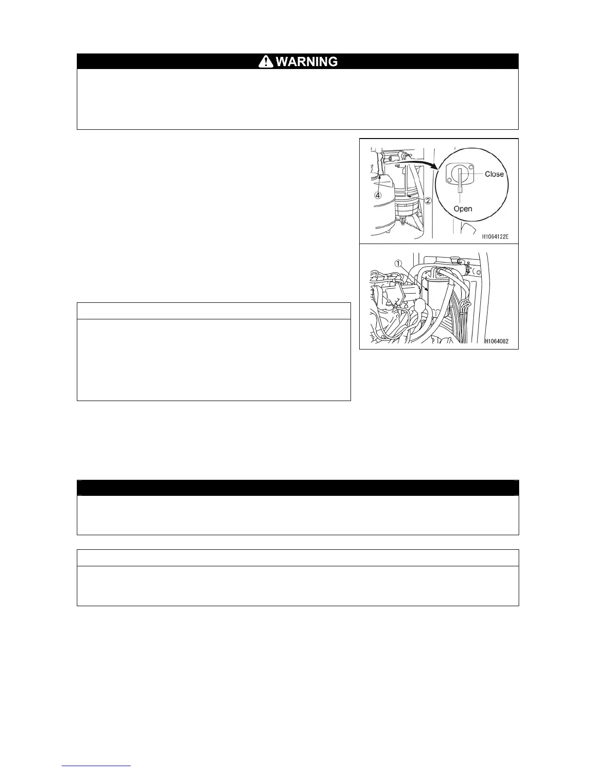 • Be extremely careful of fire such as cigarettes when replacing the fuel filter.