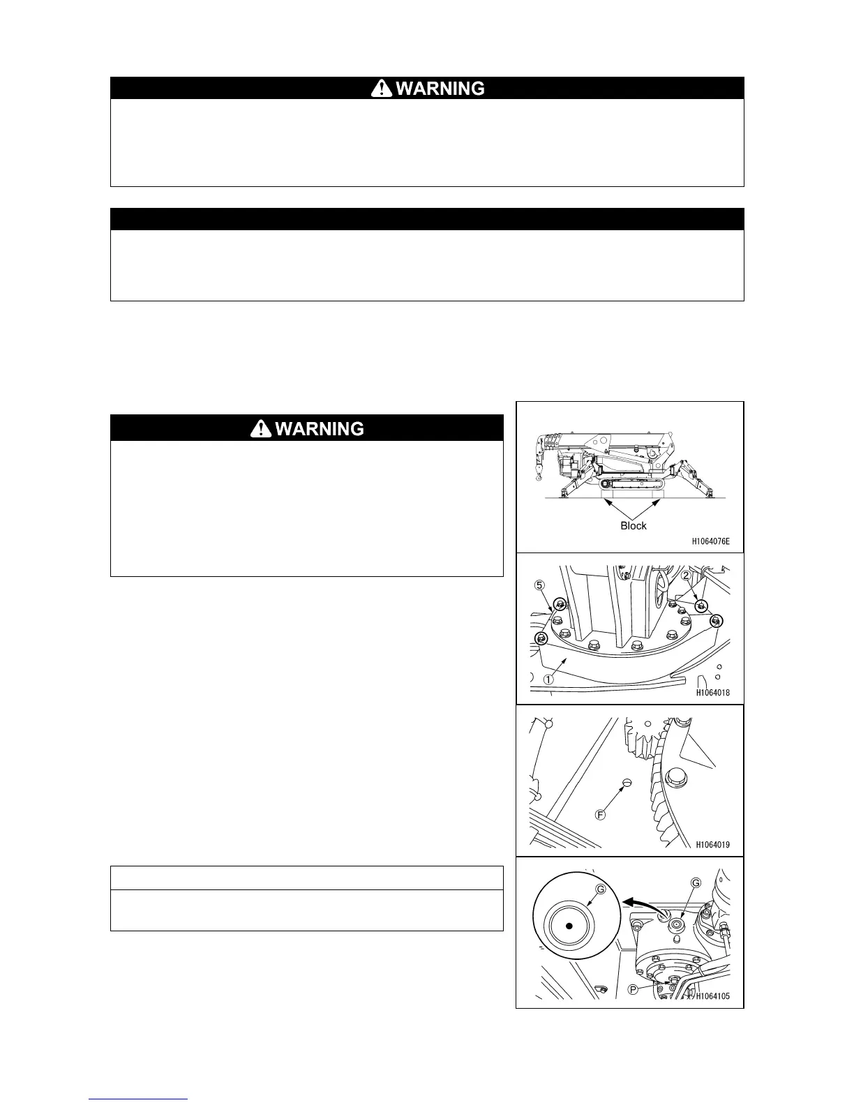 4. Remove the filler plug (F) of slewing reduction gear