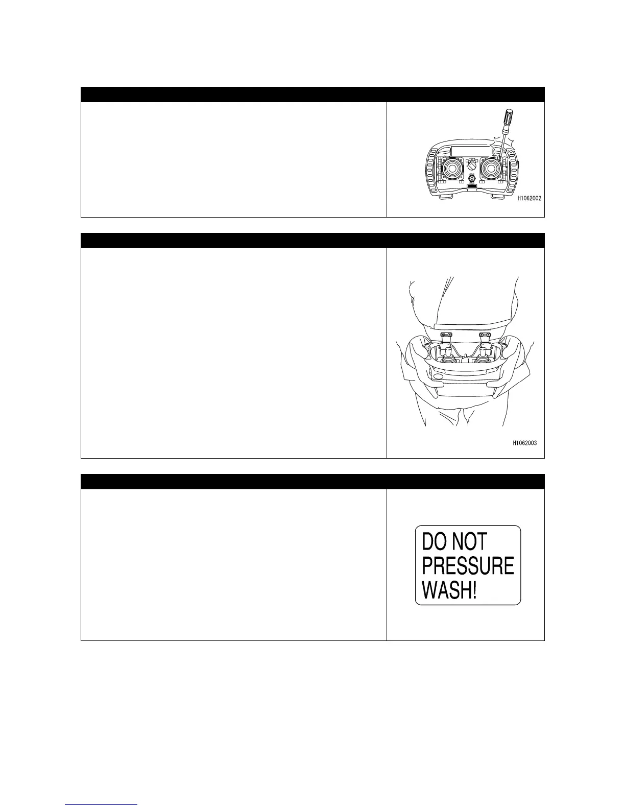 • Never attempt to high pressure wash or wash with water the