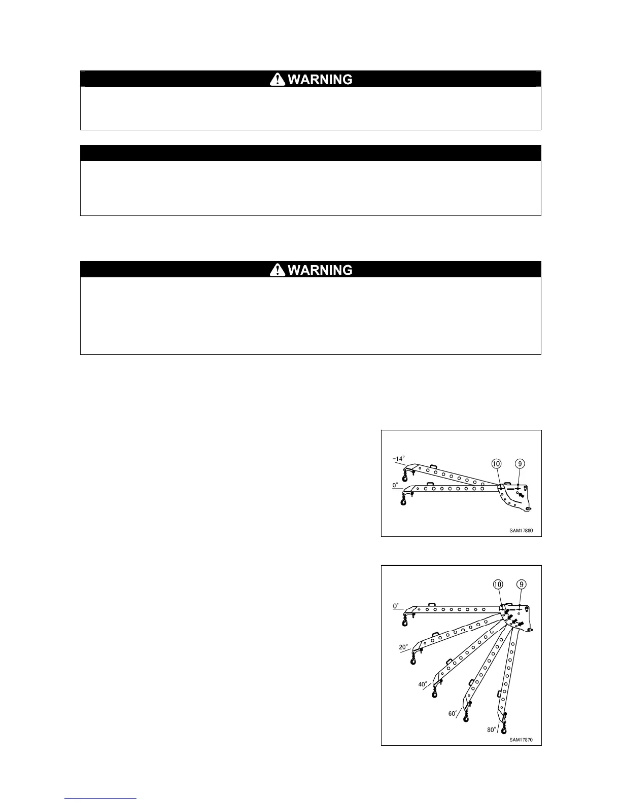 • When changing the angle, the searcher hook boom might fall suddenly after pin is pulled out,