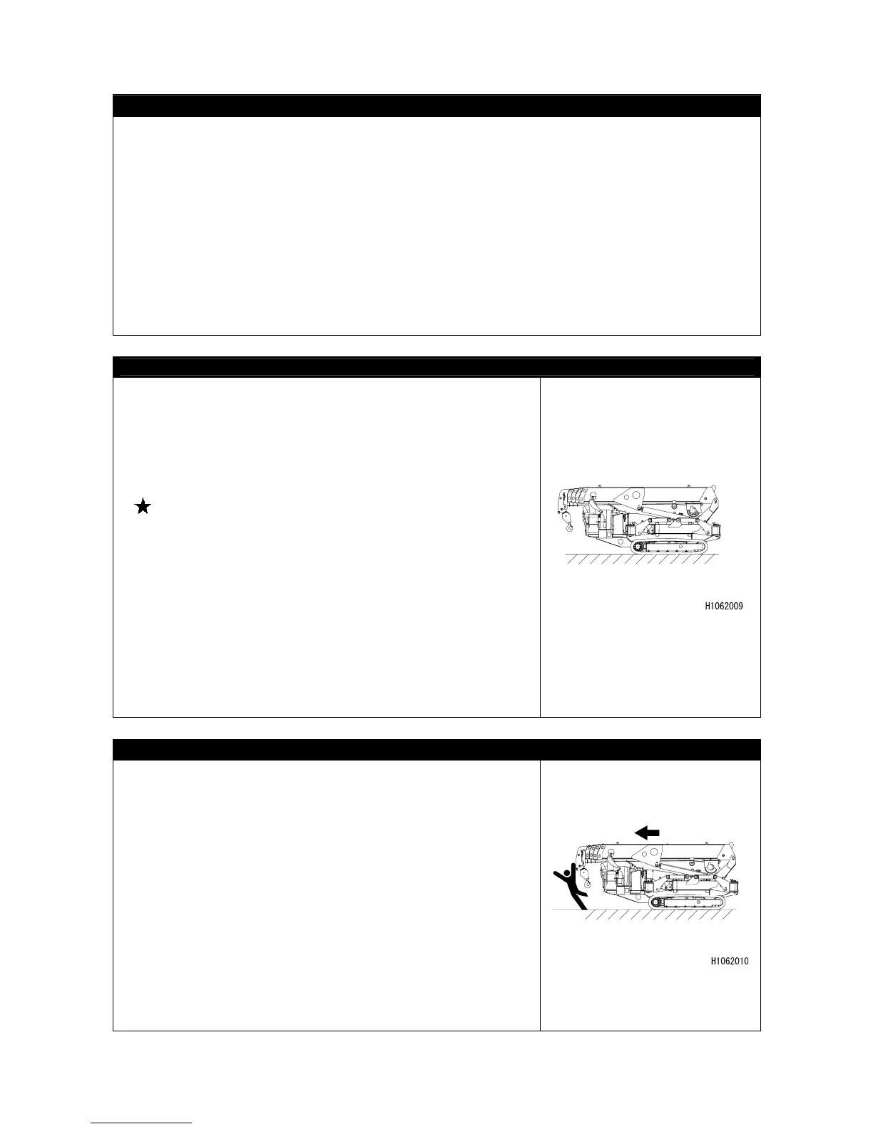• Inspect the equipment operation conditions, Machine traveling conditions, outrigger