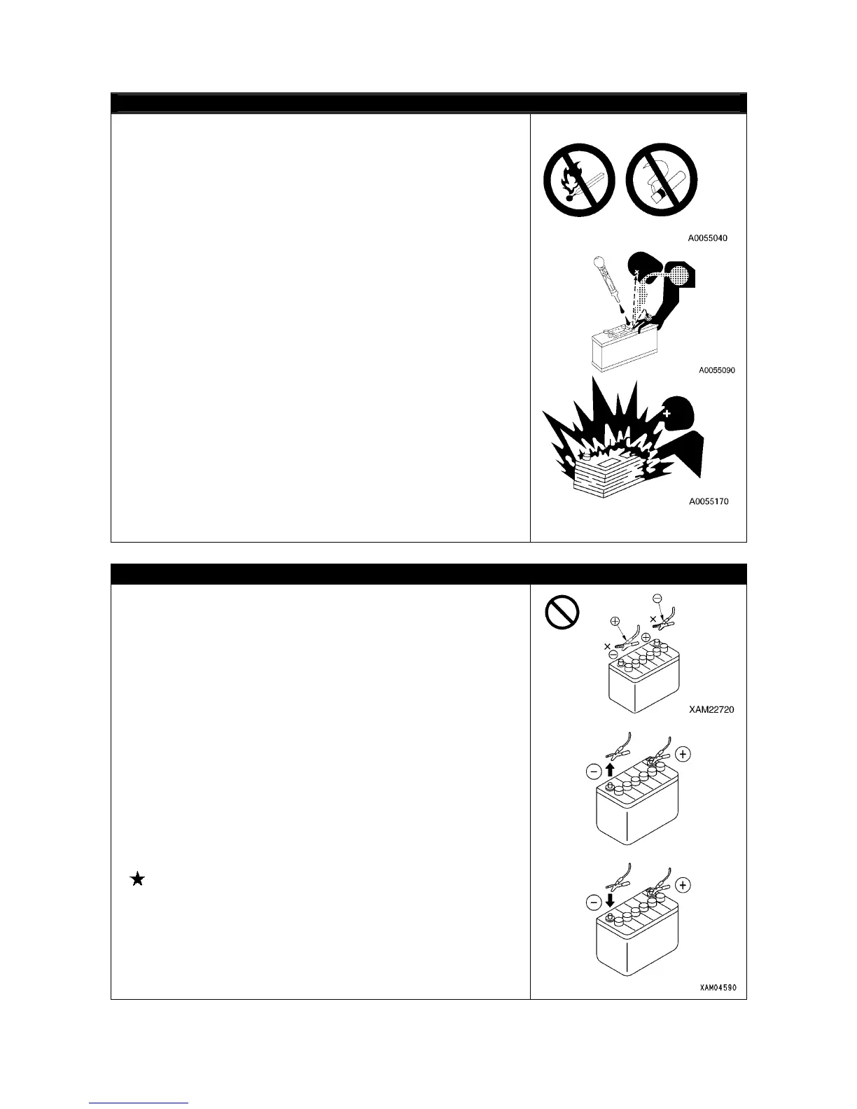 Wrong booster cable connection method may result in fire, so
