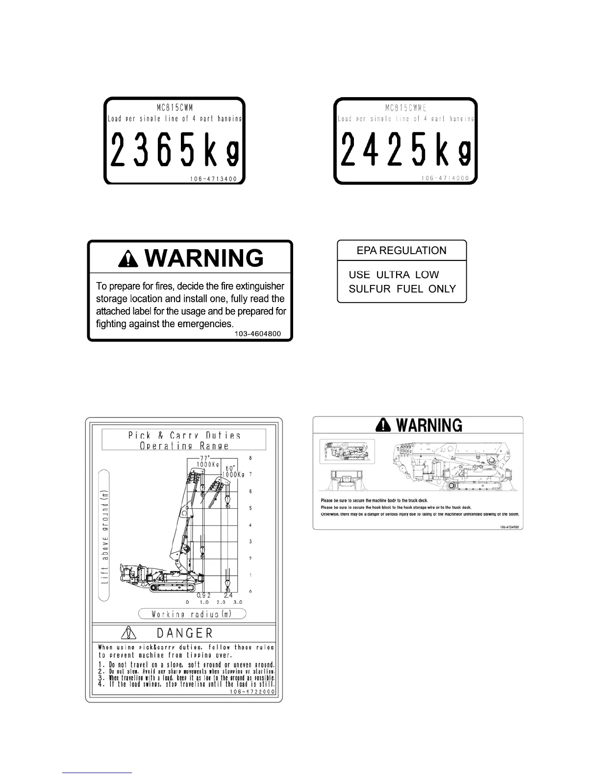 (57) Fire extinguisher caution (103-4604800) (60) EPA regulation (114110-07761)