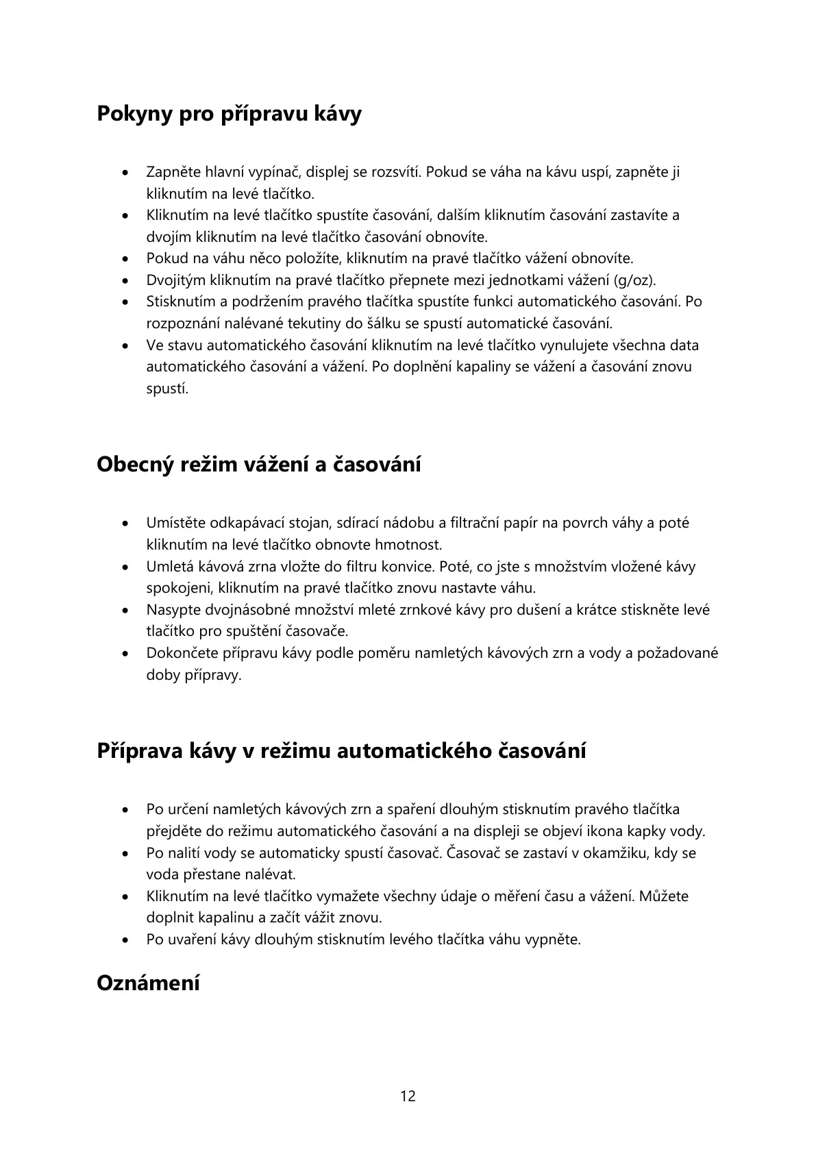 Po uvaření kávy dlouhým stisknutím levého tlačítka váhu vypněte.