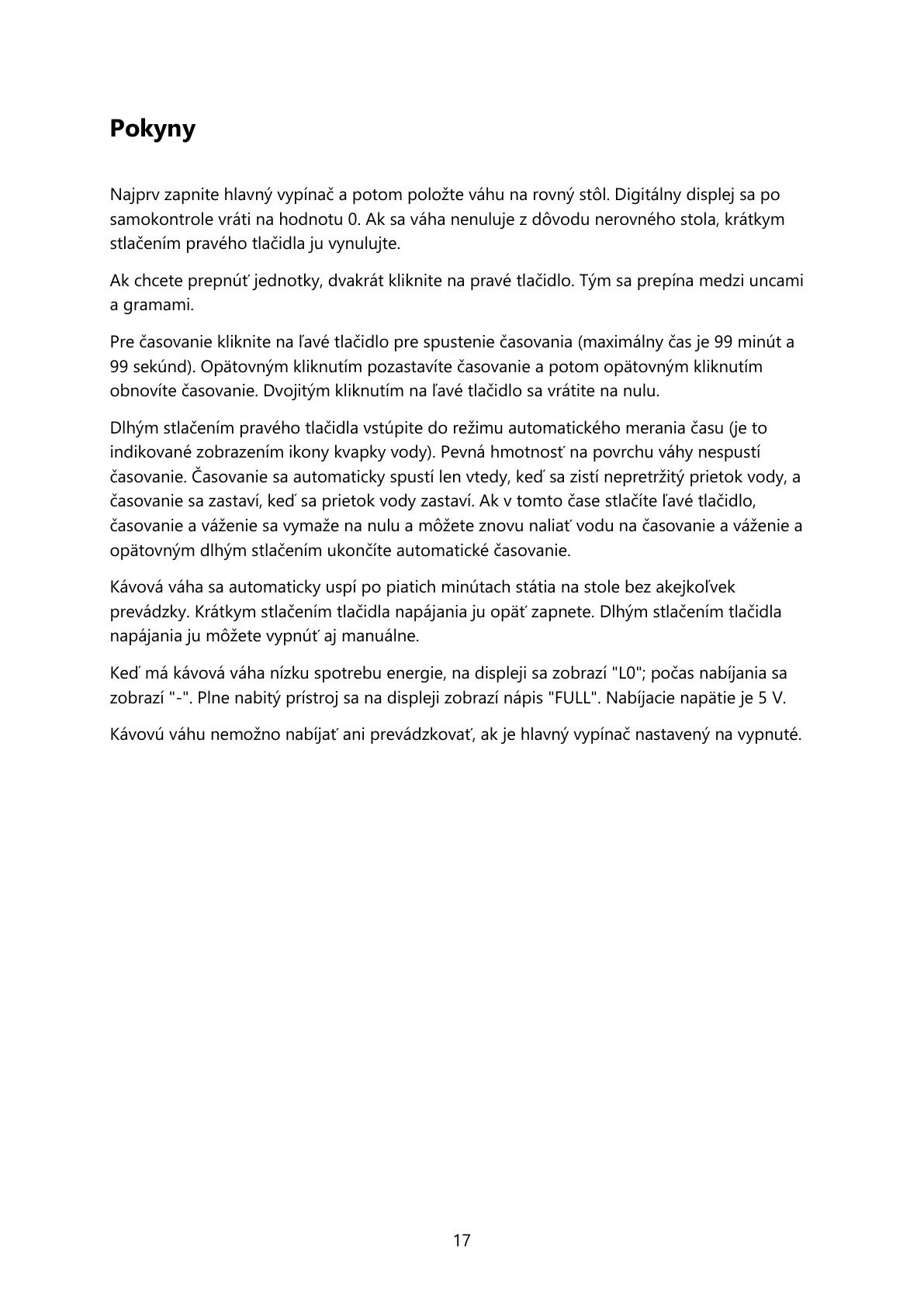 Kávovú váhu nemožno nabíjať ani prevádzkovať, ak je hlavný vypínač nastavený na vypnuté.