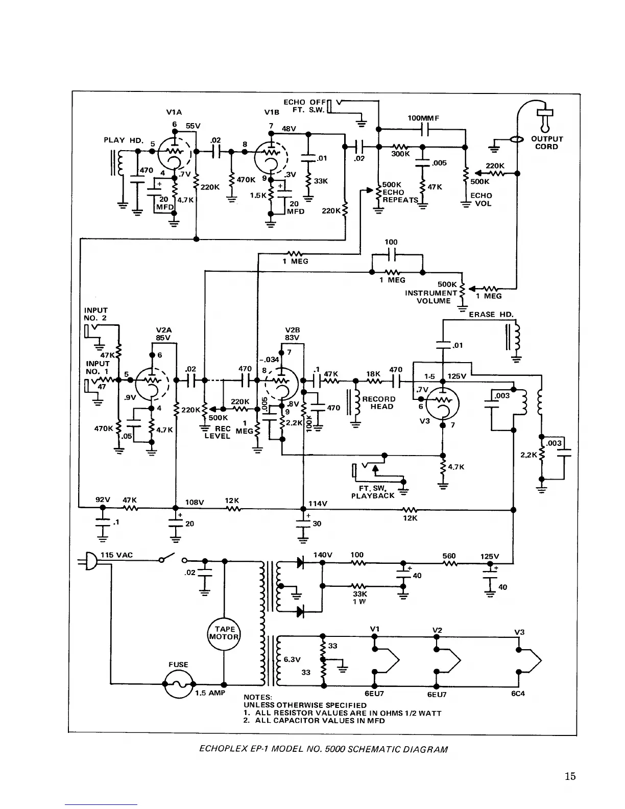 Maestro Echoplex EP-3 - Echoplex EP-1 Model No.5000 Schematic Diagram
