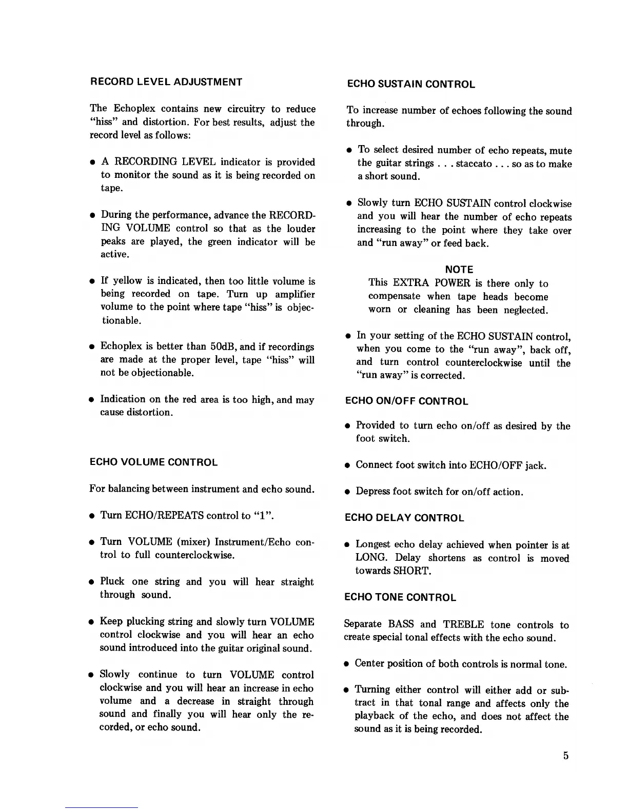 Maestro Echoplex EP-3 - Record Level, Volume, Sustain, and On;Off Controls