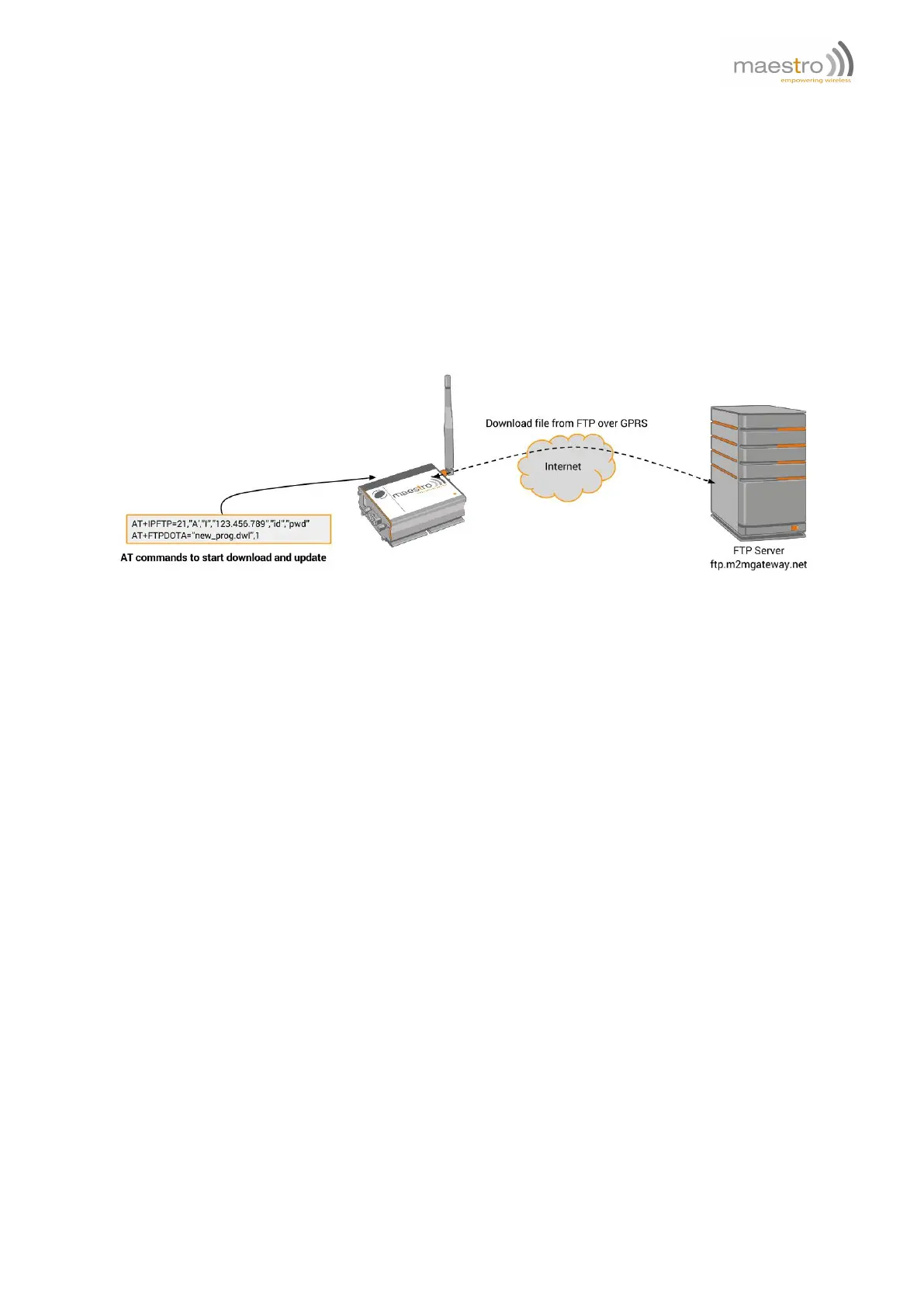 By using this feature, user can download the new version of Maestro modem application from a FTP server and