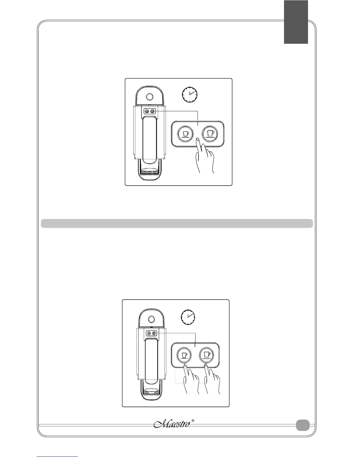 - Drücken und halten Sie gleichzeitig beide Tasten zur Zubereitung der Kaffee innerhalb 3 Sekunden.
