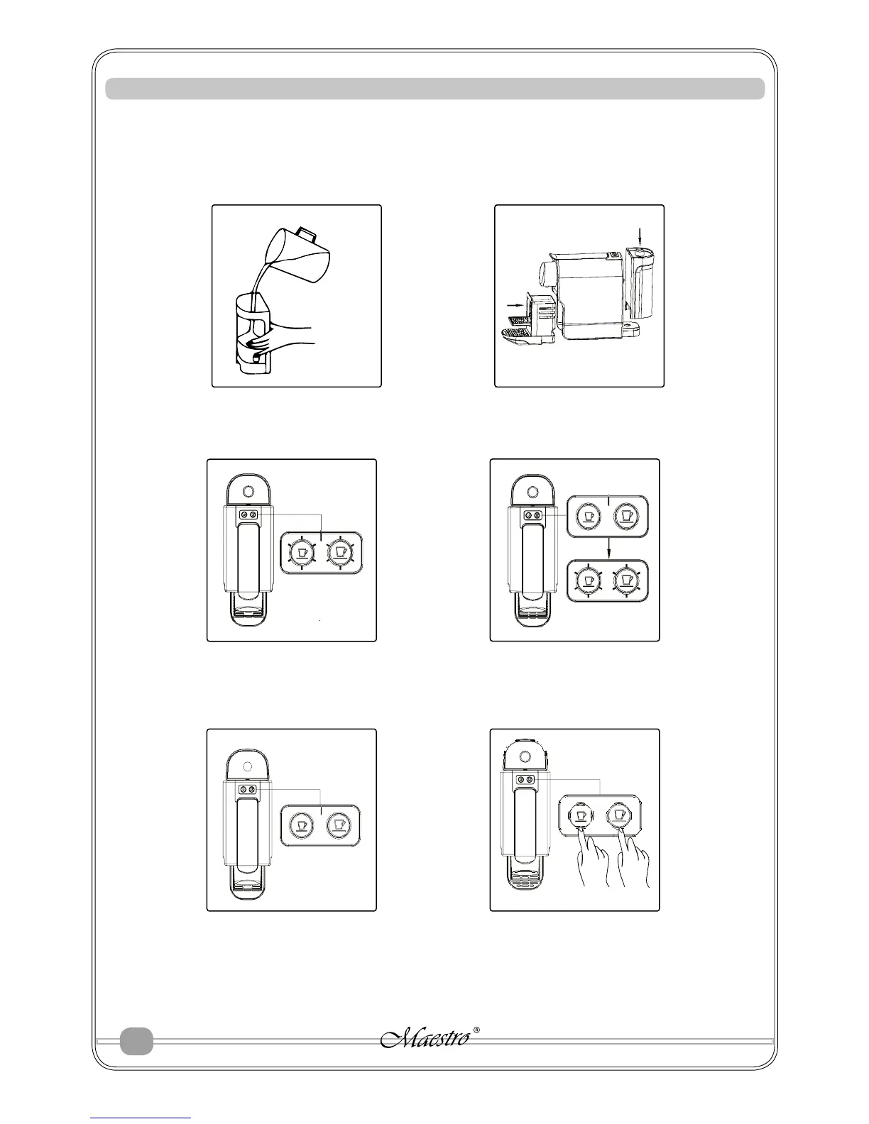 Podłącz przewód zasilający. Oba przyciski trybu parzenia kawy trzykrotnie