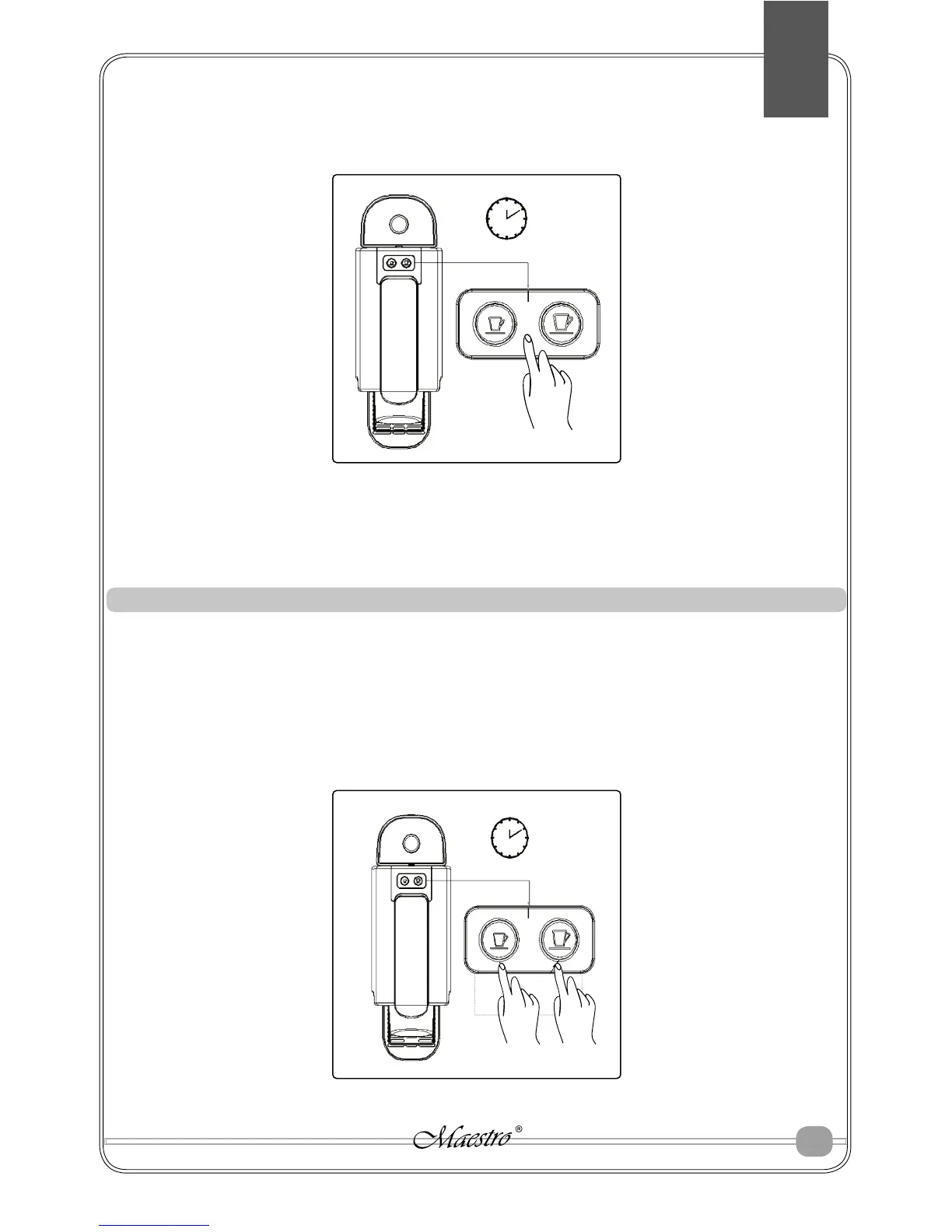 - Naciśnij i przytrzymaj jednocześnie dwa przyciski do parzenia kawy przez 3 sekundy;