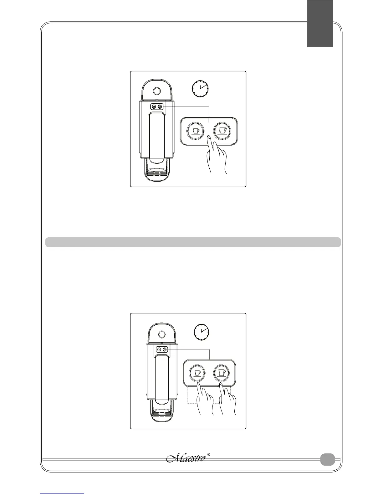 - Apăsați simultan două butoane pentru pregătirea cafelei timp de 3 secunde;