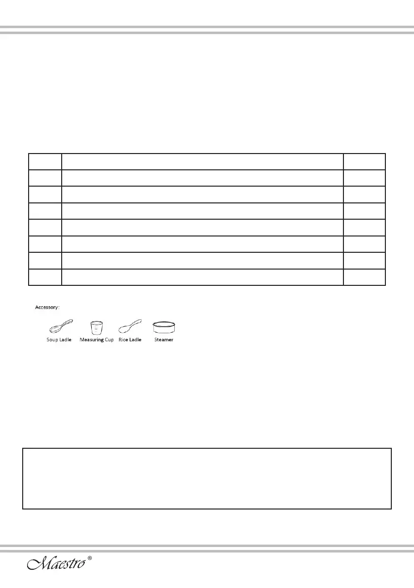 Note: The characteristics, specications and physical conguration of the appliance could be