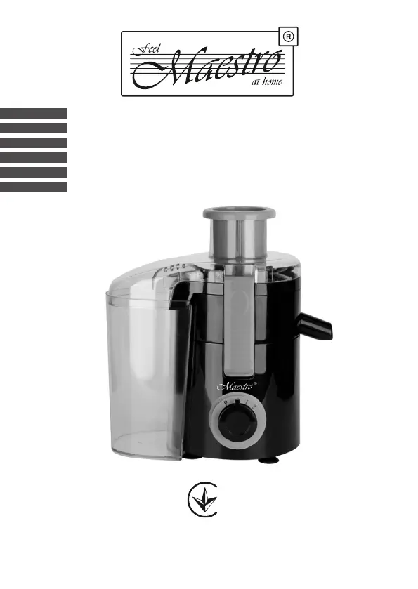 If the Maestro Juicer stops suddenly, first ensure the power plug is fully inserted into the socket. If that's not the issue, it might be that too much material has been put into the machine. In this case, clean the juicer before using it again. Also, remember to cut hard fruits and vegetables, like carrots, into strips before squeezing them.