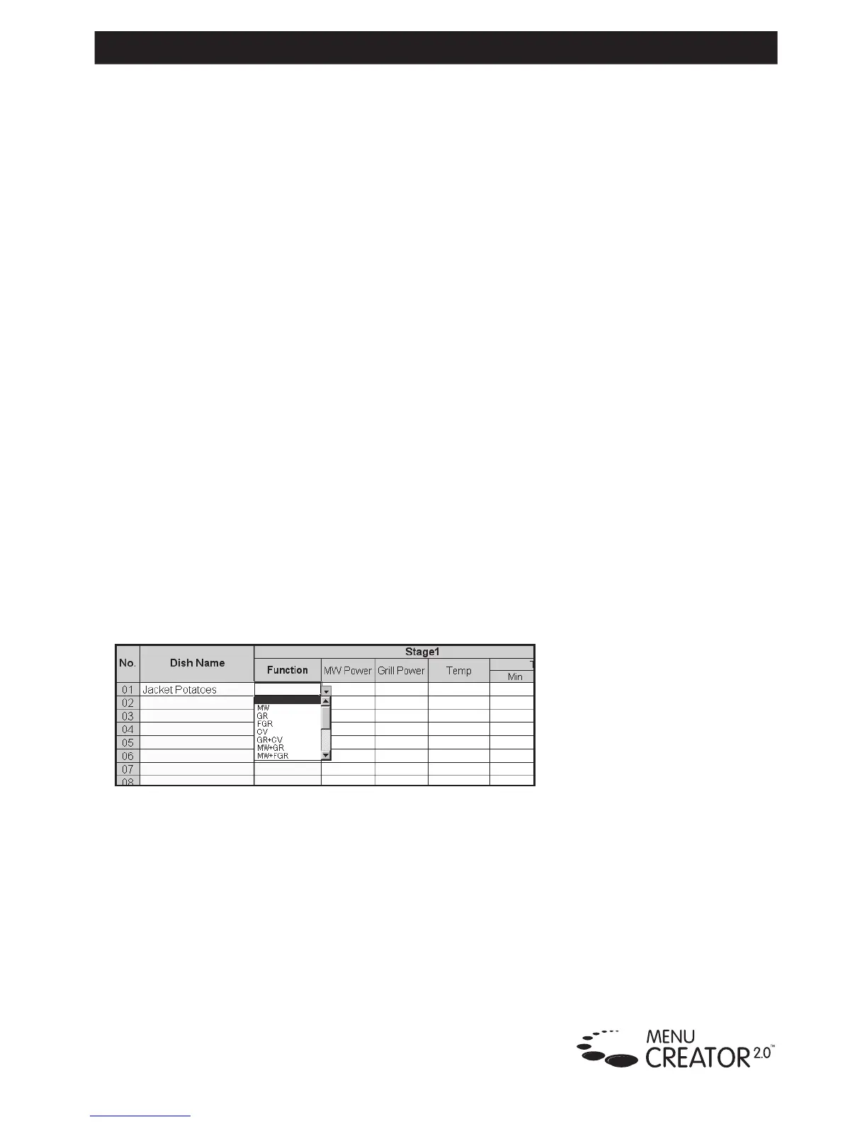 6. Select the “Function” cell, and the drop-down menu will appear. Select the first cooking function from the